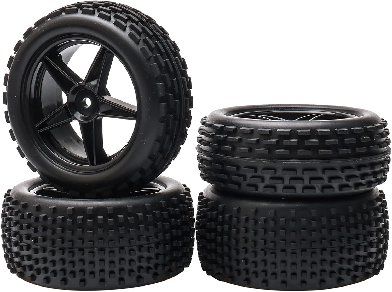 1/10 Scale Off Road RC Buggy Vorder- & Hinterrad Felgen und Reifen x4 Schwarz 5 Speichen für HSP