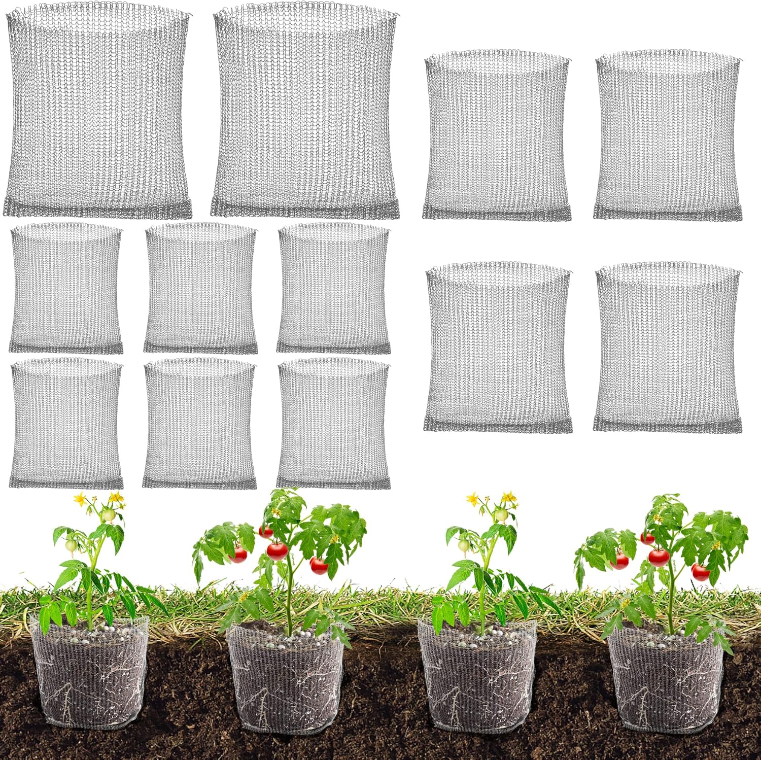 12 Stück Pflanzkorb Wühlmausschutz, Wühlmauskorb, 1/3/5 Gallonen Metallnetzbe...