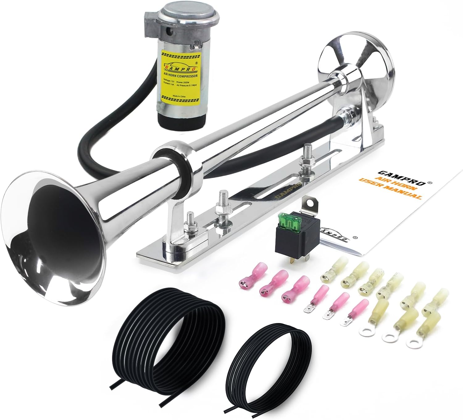 Ein weiterer Pluspunkt der GAMPRO Lufthupe ist die einfache Installation. Im Lieferumfang sind ein Relais-Verkabelungssatz und die nötigen Sicherheitsrelais enthalten, sodass die Verkabelung problemlos vonstattengeht. Die beiliegende Installationsanleitung ist klar verständlich und wird durch bebilderte Demonstrationen unterstützt. Somit ist die Montage auch für weniger erfahrene Nutzer machbar, was die Hupe zu einer praktischen Wahl für viele Fahrzeugbesitzer macht.