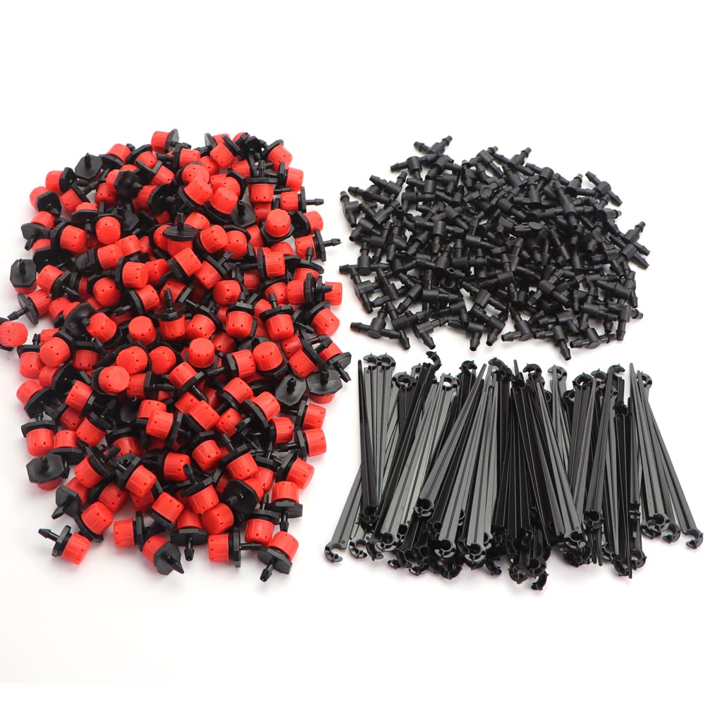 50 Einstellbare Micro Drip Tropfer+50 T-Steckverbinder+50 Gartenschlauch-Erdanker Garten Micro-Drip-System Automatische Bewässerung Tropf Sprinkler Tröpfch