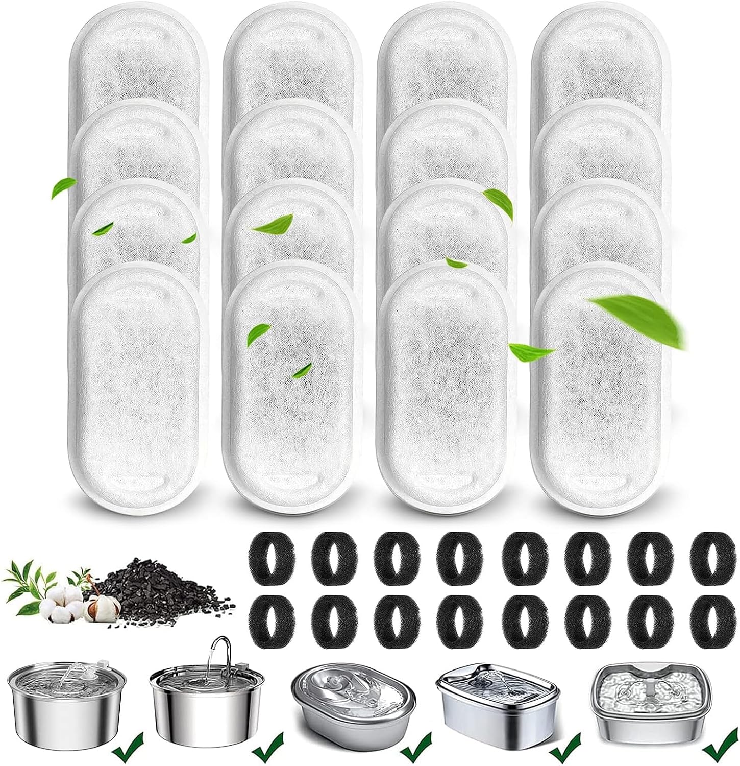 16+16 Stück Filter Katzenbrunnen,Filter Trinkbrunnen Katzen Ersatzfilter für 108oz/3.2L und 67oz/2L Edelstahl Trinkbrunnen für Katzen und Hunde,16 Stück Ko