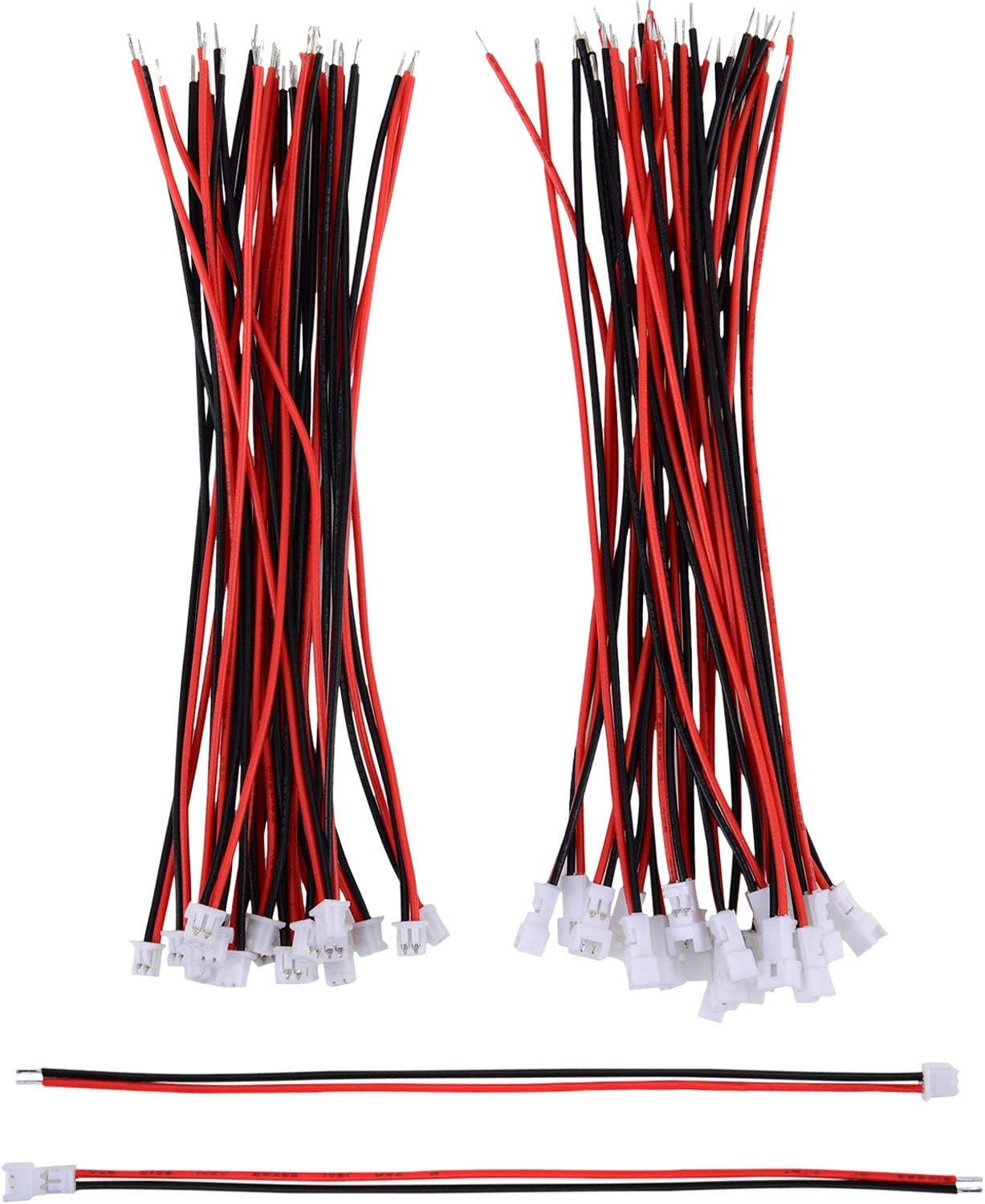 20 Paar 1,25 mm JST 2-poliger elektrischer Mikro-Stecker und -Buchse mit 10 cm langem Kabel. JST-Stecker-Set: 20 Paar JST 1,25 mm-Stecker mit 10 cm/3,9 Zol