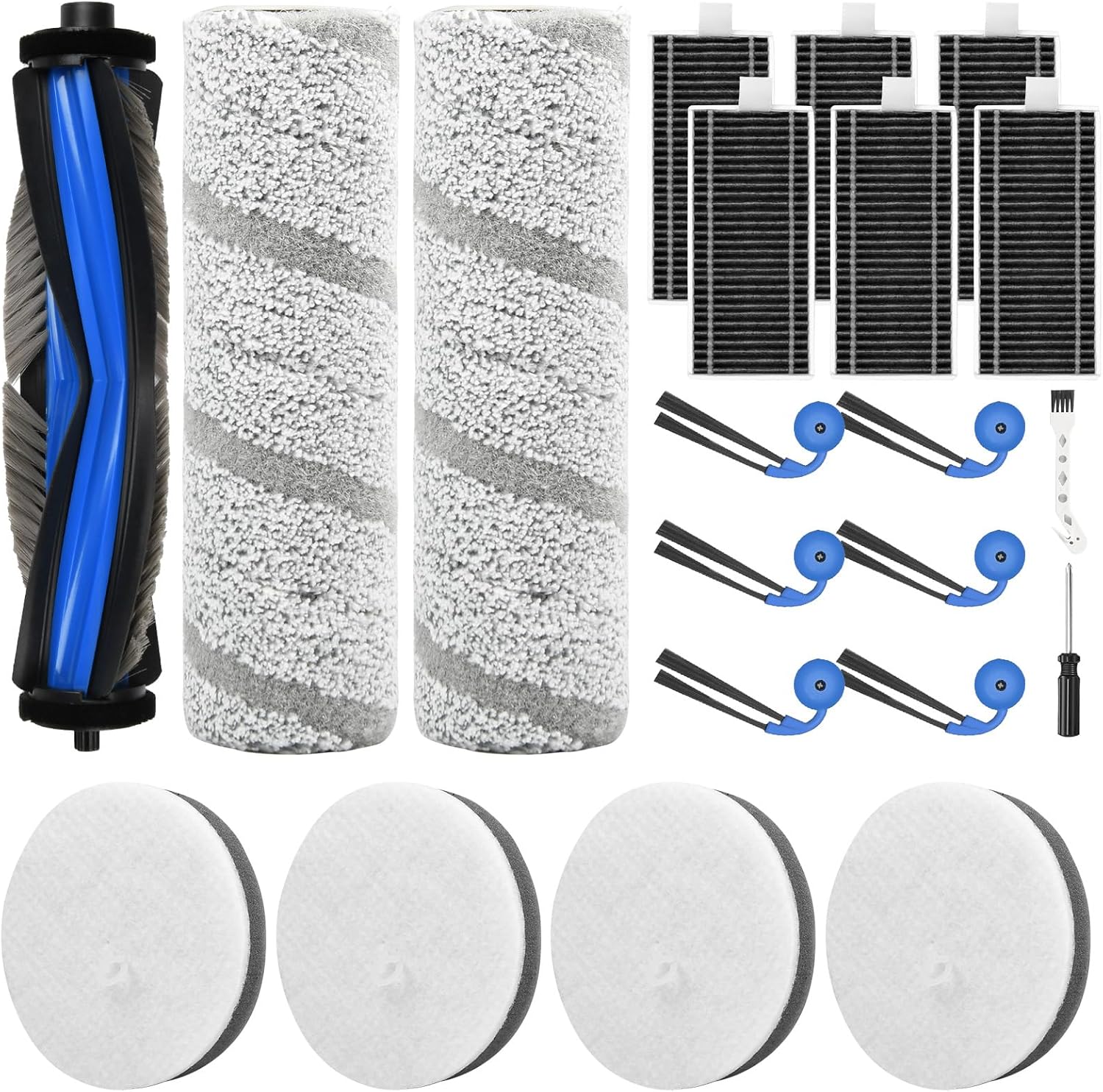 21 Stück Zubehör für Ecovacs X11 OMNICYCLONE Saugroboter, Ersatzteile mit 1 Hauptbürste, 4 Wattefilter, 2 Wischwalze, 6 Filter, 6 Seitenbürsten, 1 Reinigun