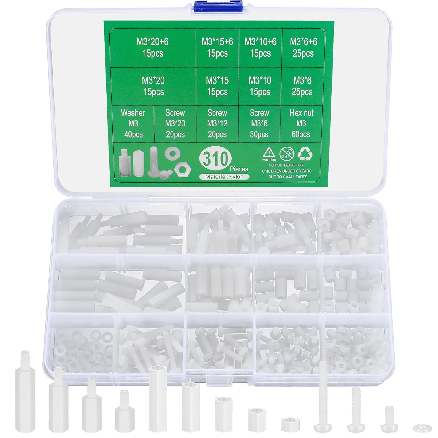 310 Stück M3 Nylon Schraube Mutter Abstandshalter, Männlich Weiblich Nylon Se...