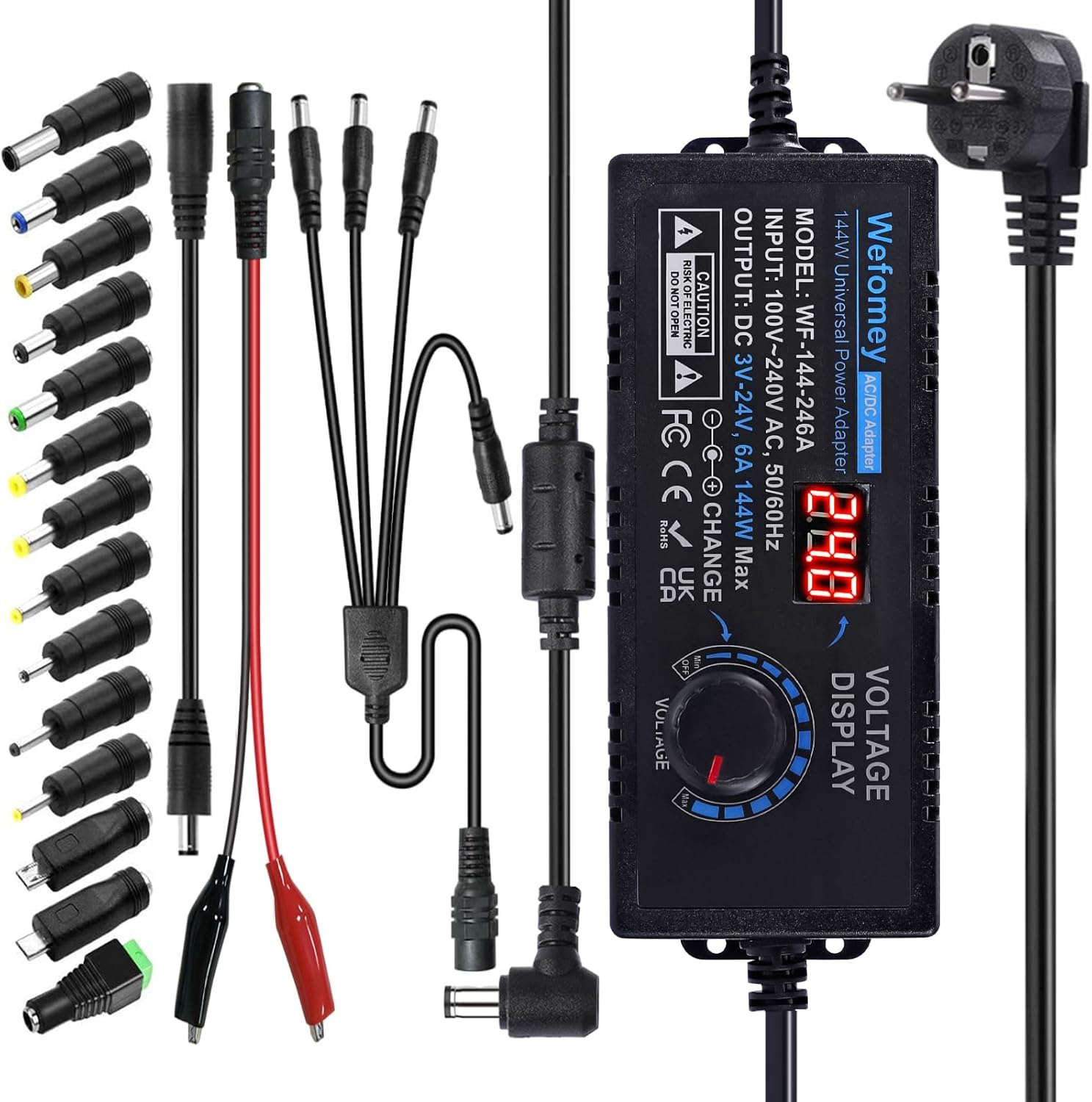 3V-24V 6A 144W Einstellbares Netzteil Universal Netzteiladapter Verstellbarer Netzadapter 100V-240V AC to DC mit LED Spannungsanzeige und 14 Tipps für Haus