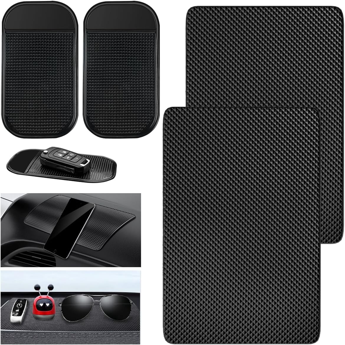 Die WHC Antirutschmatte ist vielseitig einsetzbar und eignet sich für eine Vielzahl von Gegenständen, die man im Auto mit sich führt. Egal ob Handy, Schlüssel, Sonnenbrillen oder Geldbörsen – die Matten bieten einen sicheren Platz für all diese Dinge und helfen, sie bei Bedarf schnell zur Hand zu haben. Das Set umfasst vier Matten in unterschiedlichen Größen (27 x 15 cm und 14 x 8 cm), was die Anpassung an verschiedene Ablagen im Fahrzeug erleichtert.Fazit