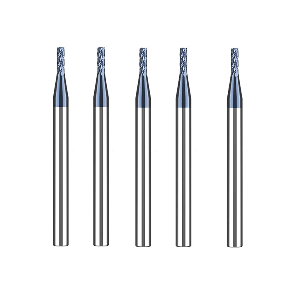 5 Stücke Hartmetall Schaftfräser 2mm, 4 Zähne/4 Schneiden, AlTiN Schwarz Besc...