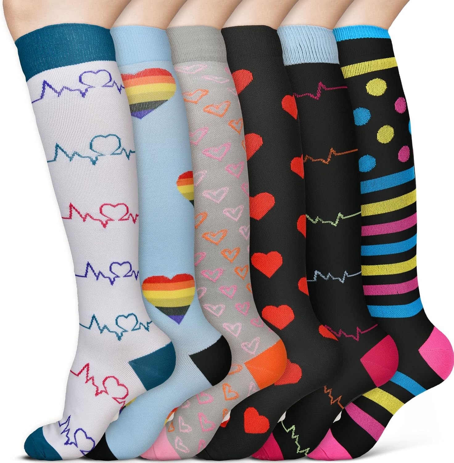 ACWOO Kompressionsstrümpfe Bunt für Damen Herren, 6 Paar Stützstrümpfe Medizinisch Kompressionssocken Bunt Thrombosestrümpfe mit 15-20 Mmhg, Compression So