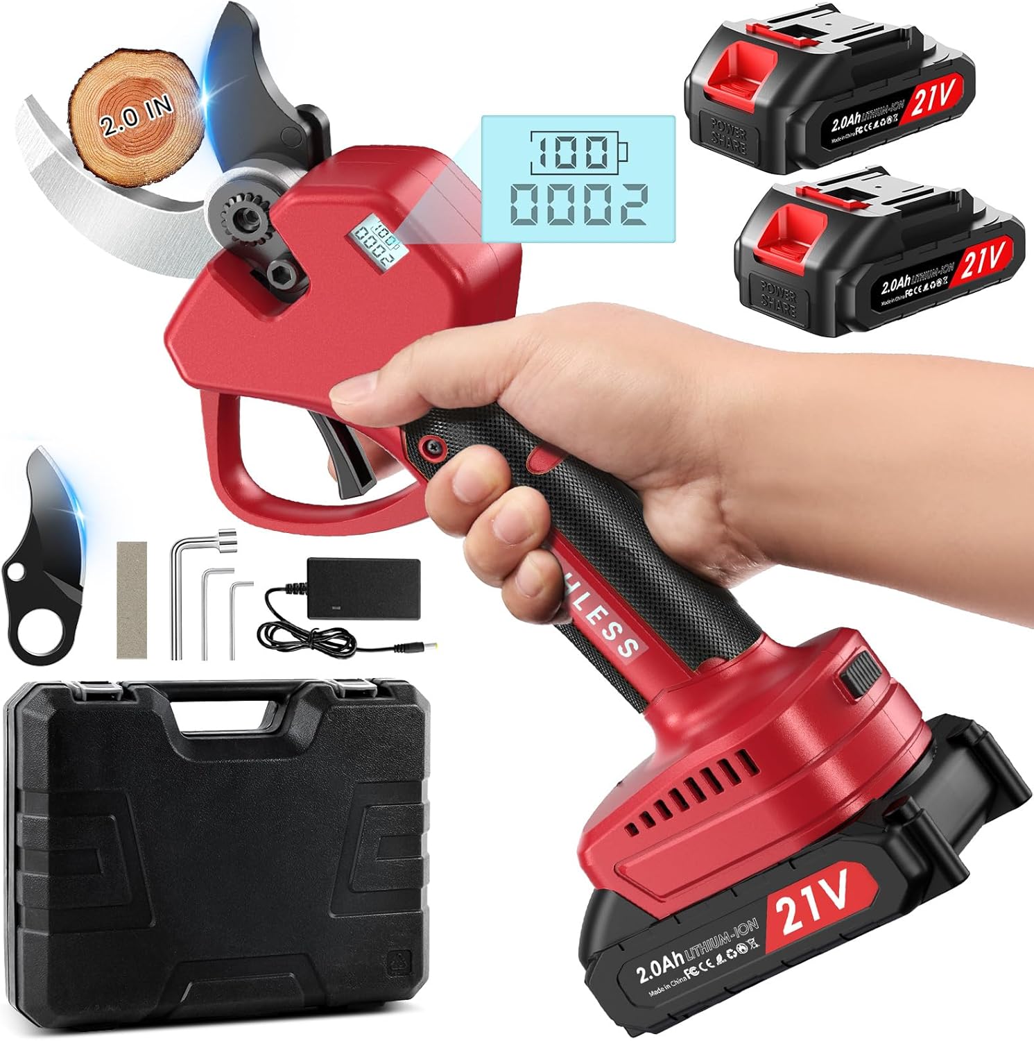 Akku Astschere, 50MM Elektrische Gartenschere Kabellos für Makita mit LCD Anzeige 2x 2000mAh Batteries, Leistungsstark Leise, Professionelle Bürstenlose Ga