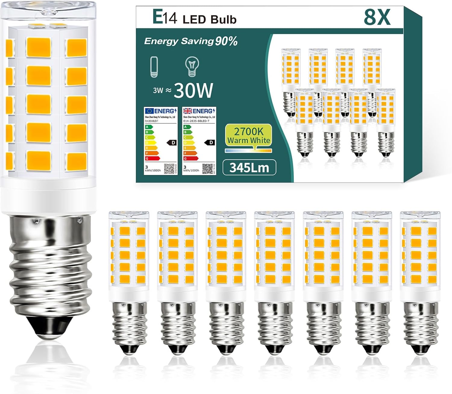 AmmToo E14 LED Warmweiss Birne, 2700K LED Lampe, Glühbirne E14 3w 480LM ersetzt 40W 45W Halogenlampen, Kein Flackern Kühlschranklampe Nicht Dimmbar, Led Ma