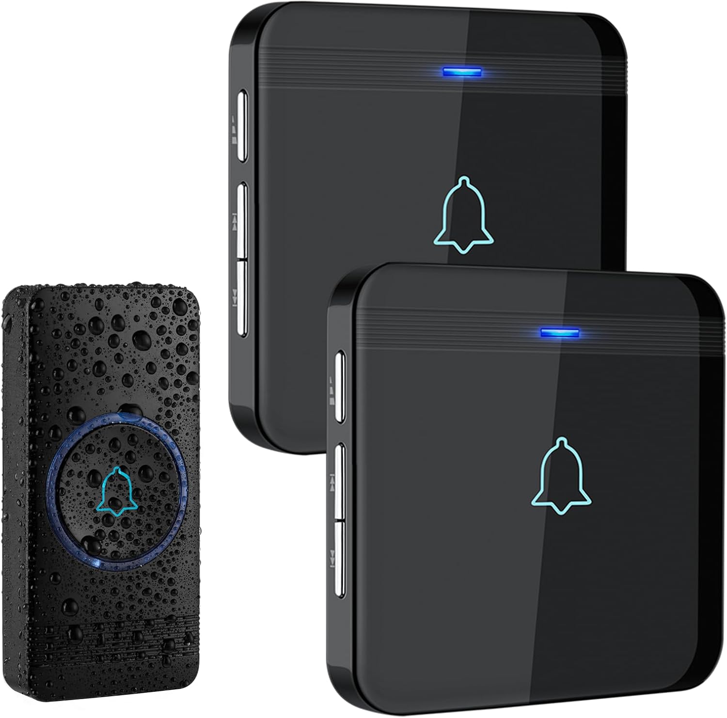 AVANTEK Funkklingel, Türklingel Funk Set, 400m Reichweite IP55 Aussen Wasserdicht Haustür Klingel mit 2 Plug-In-Empfänger, 52 Melodien, 5 Lautstärkestufen,