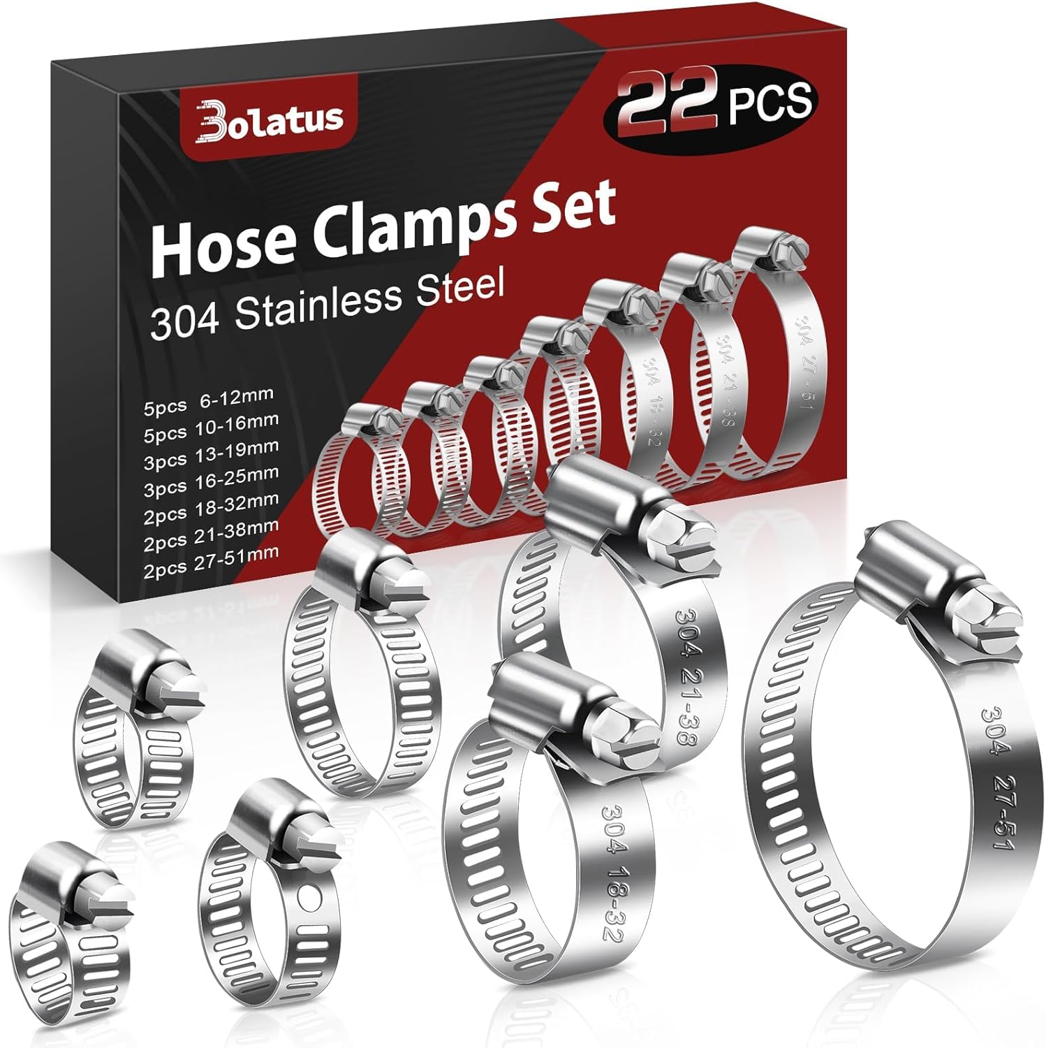 Bolatus Schlauchschellen Set 6-51mm, 22 Stk Schlauchklemme Edelstahl 304 Eins...