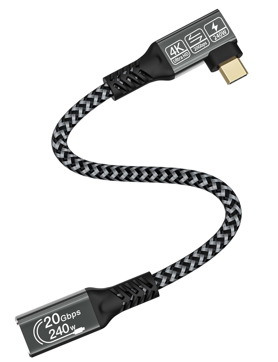 CAKOBLE USB C Verlängerungskabel 0,25m, Winkel Buchse auf Stecker, Unterstützt 3.2 20Gpbs/240W und 4K@60Hz Mit iPhone 16/15 MacBook Galaxy S24