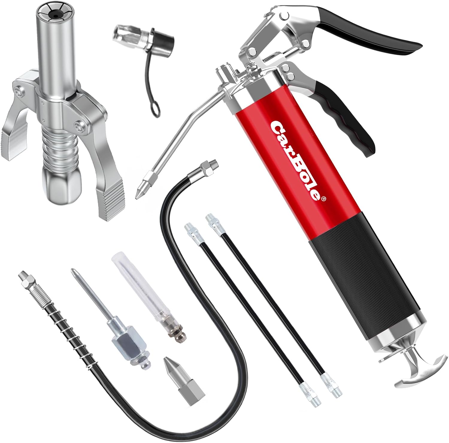 CarBole Fettpresse 8000PSI mit Coupler und 3 flexible Schläuche und Verlängerungsrohr aus Metall,Mit sechs Düsentypen und geeignet für verschiedene Szenari