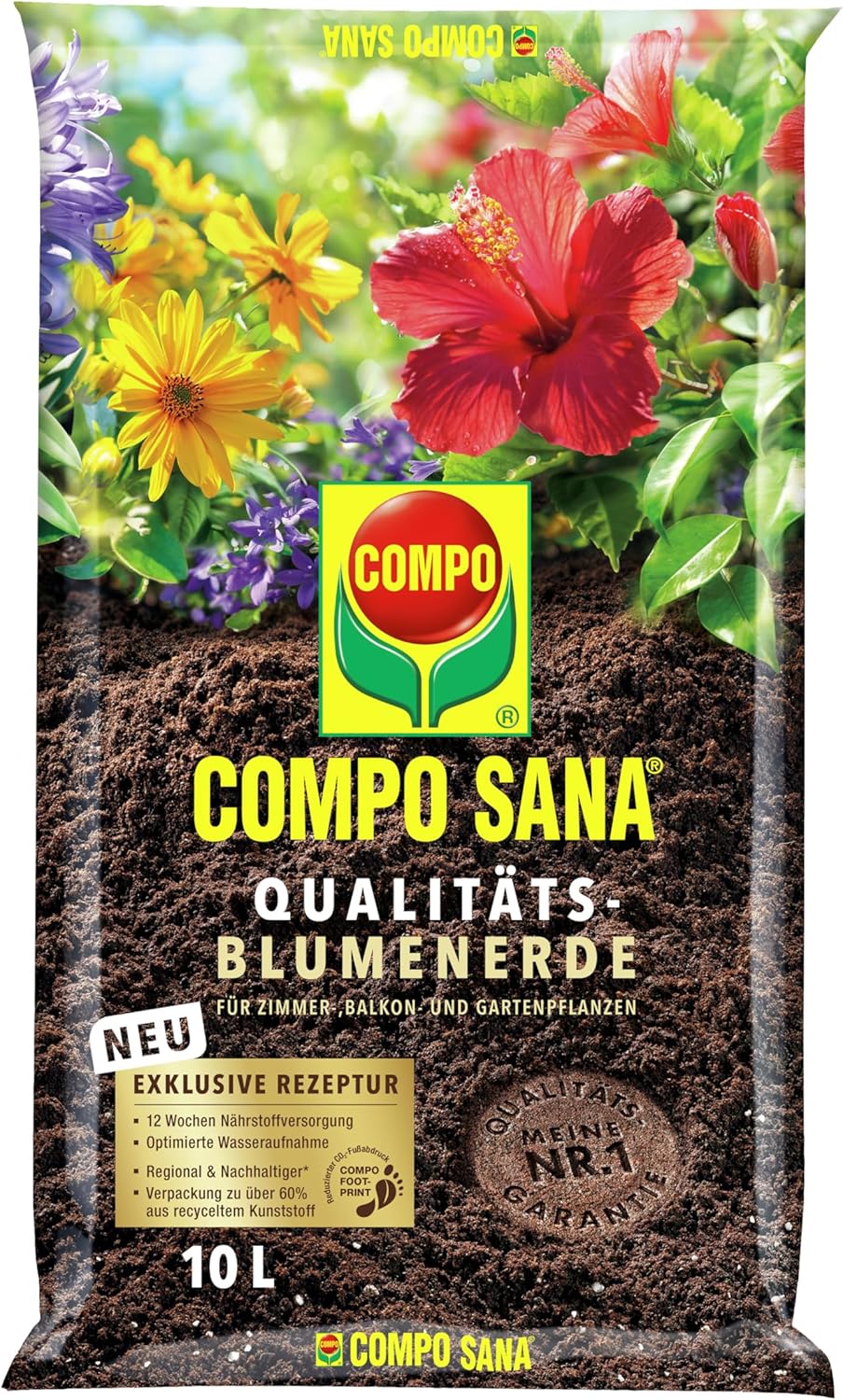 COMPO SANA Qualitäts-Blumenerde mit 12 Wochen Dünger für alle Zimmer-, Balkon- und Gartenpflanzen 10 l