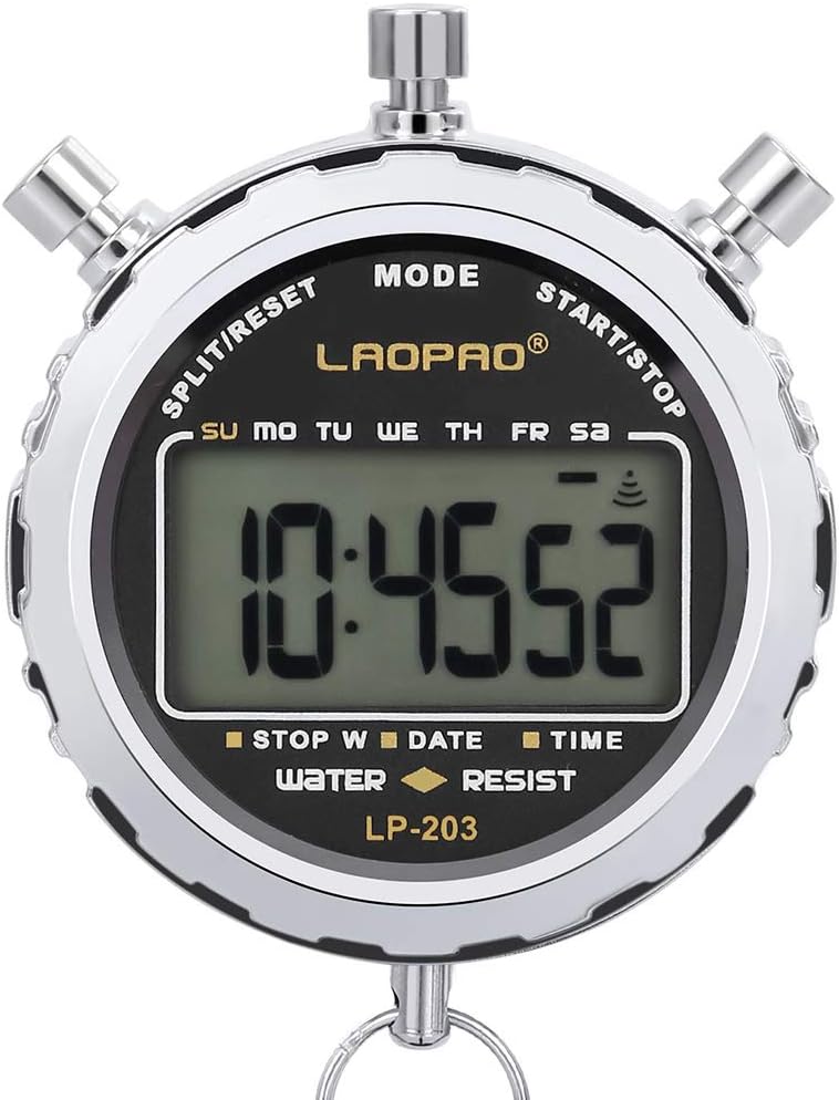 Digitale Stoppuhr,Laopao Handheld Großes LCD-Display Wasserdicht täglich Alarm 1/100 Sekunden Precision Timer Für Fussball Sports Training