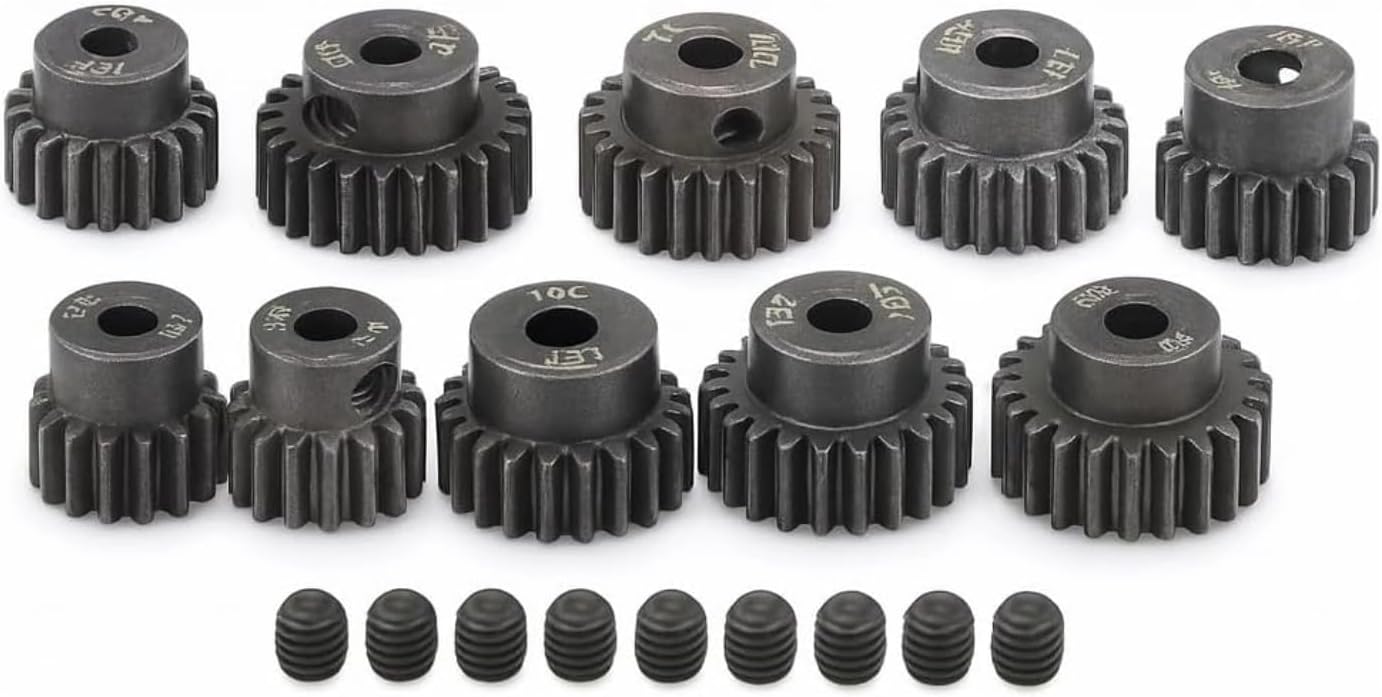 Dilwe RC Motor Gear, 10 Stück/Set 16T - 25T 7075 48P Stahl Motor Zahnrad Ritzel RC Zubehör Geeignet für bürstenlose 1/8 1/10 Motoren