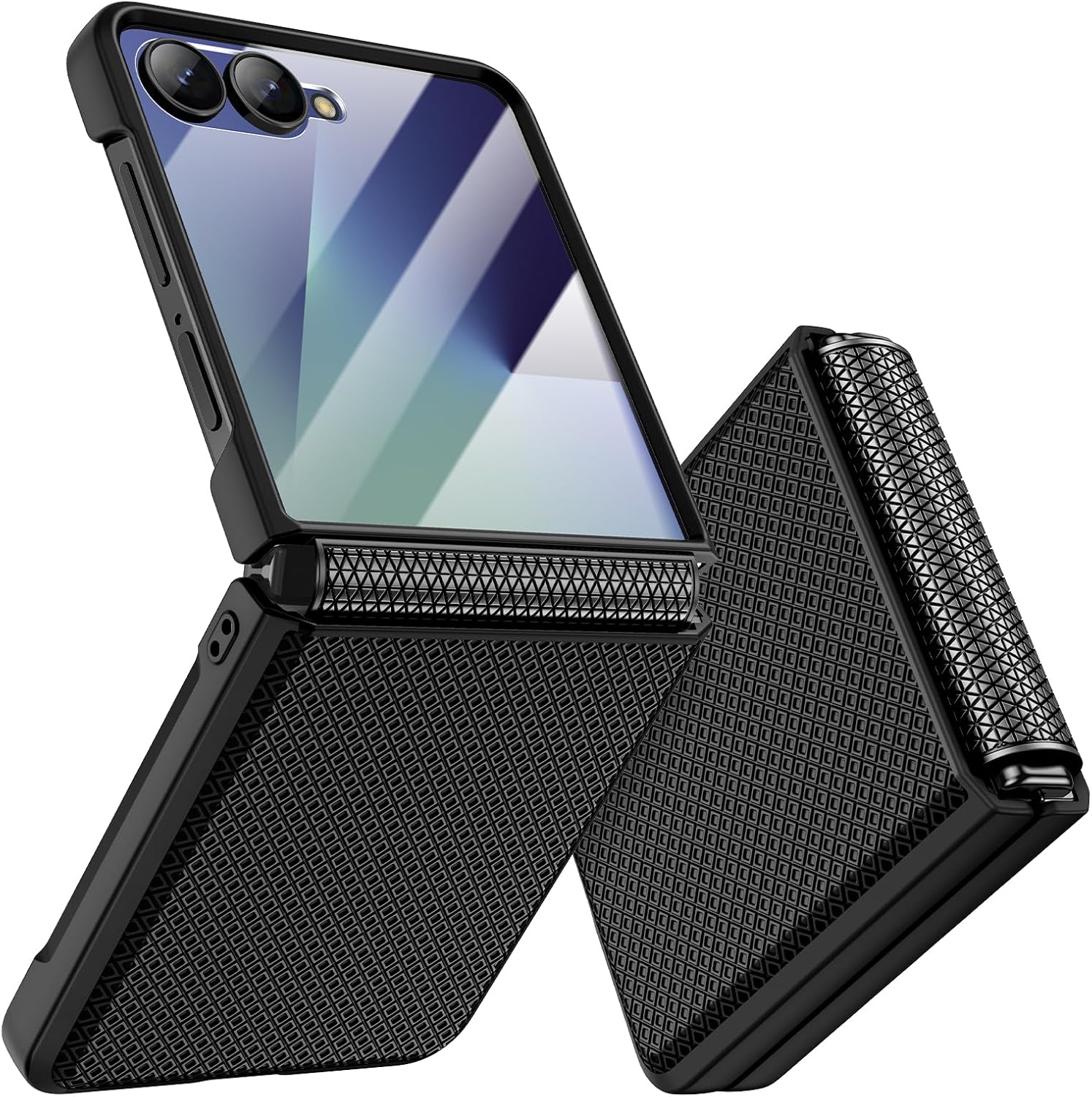 Doeshine für Samsung Galaxy Z Flip 7 Hülle [Not für Flip 7FE] mit Scharnierschutz & Displayschutzfolie, Rutschfester Textur, Hard PC Militär Stoßfest Schut