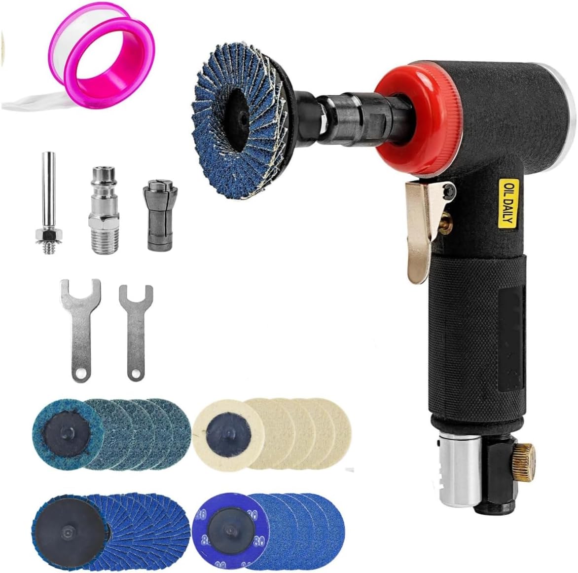 Druckluftschleifer, Druckluft Winkelschleifer Set - Mini Druckluft Schleifer mit 6mm & 3mm Spannzange und 20 2 Zoll Schnellwechselscheiben Set, Poliermasch