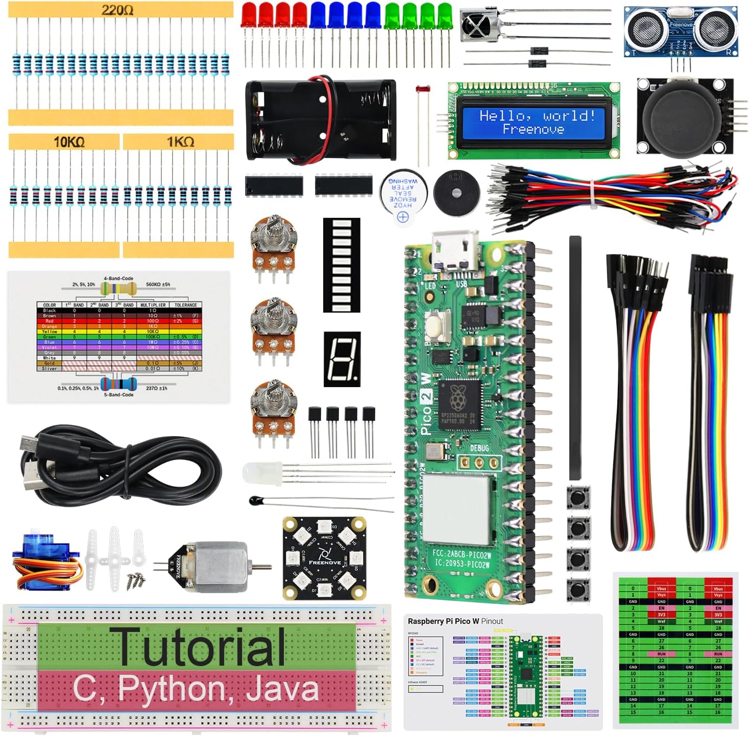 Freenove Super Starter Kit for Raspberry Pi Pico 2 W (Included), Dual Arm Cor...