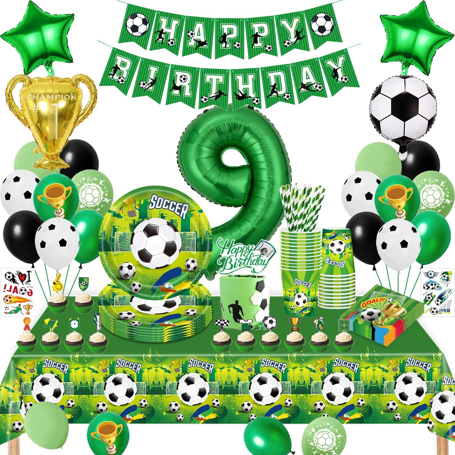 Fussball Geburtstag Deko 9 Jahre, Fussball Partygeschirr Set, Geburtstagsdeko...