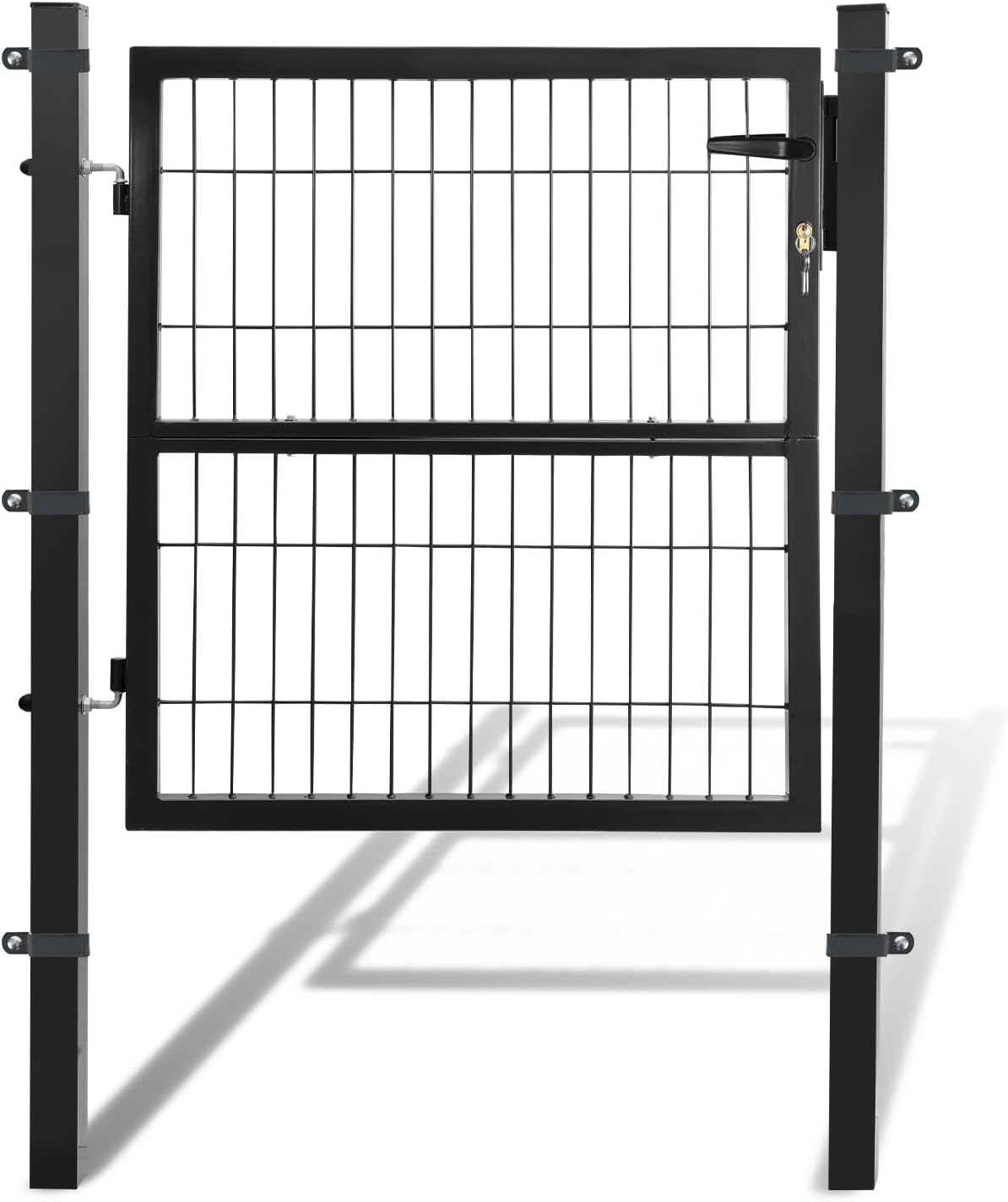 Gartentor Anthrazit 100x100cm Gartentür mit Schloss Zauntür für Garten Tor Gartenpforte Gitterzaun