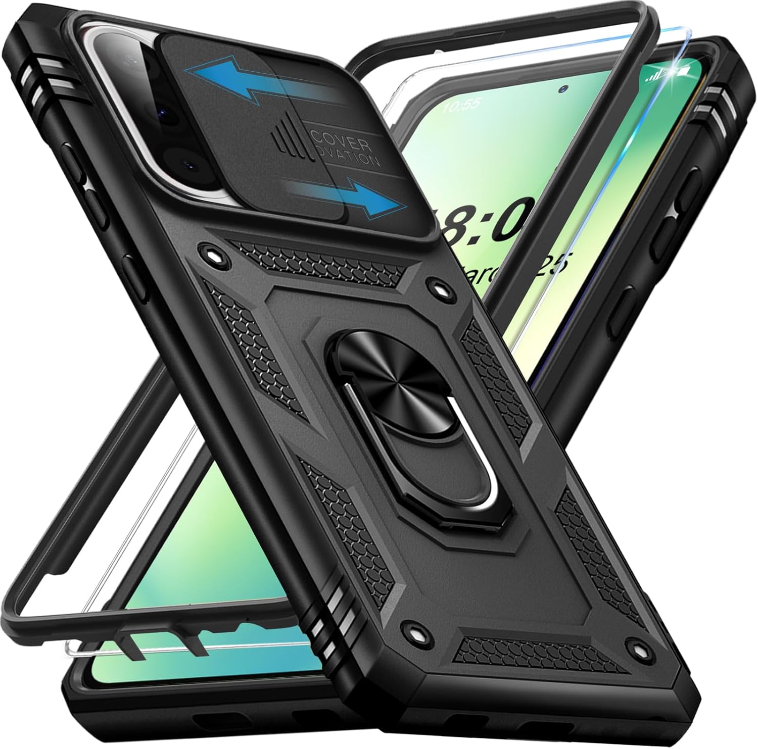 Giyer Panzerhülle für Samsung Galaxy A56 5G Hülle mit Schutzfolie, Handyhülle A56 5G Case mit Kameraschutz 360° Metall Ring Ständer, Stoßfest Schutzhülle f