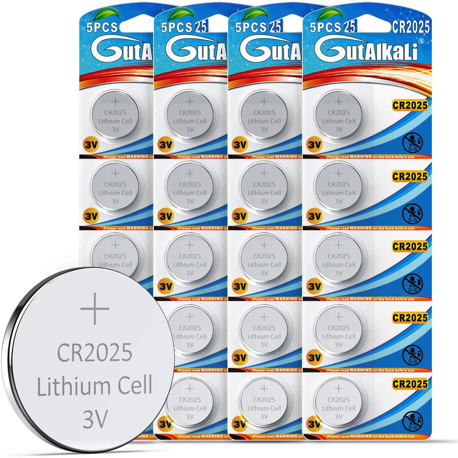GutAlkaLi 20 Stück CR2025 3V Lithium Knopfzellen CR 2025 Batterien (CR2025-20...