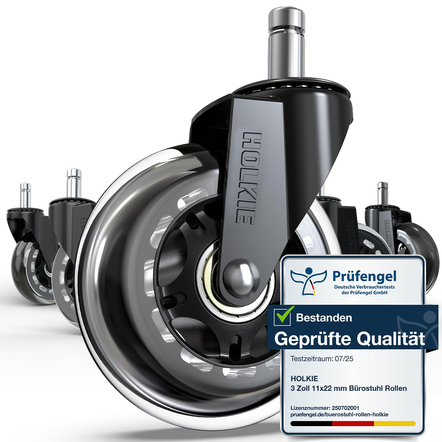 Diese Rollen sind nicht nur für Bürostühle geeignet, sondern auch für Gaming-Stühle und andere Möbelstücke. Sie bieten ein sicheres Gleiten auf verschiedenen Untergründen, wodurch sie eine vielseitige Option für unterschiedliche Anwendungen darstellen. Die HOLKIE Rollen sind TÜV-geprüft und garantieren damit ein hohes Maß an Sicherheit und Stabilität, was besonders wichtig ist, wenn kleine Kinder oder Haustiere im Umfeld sind.
