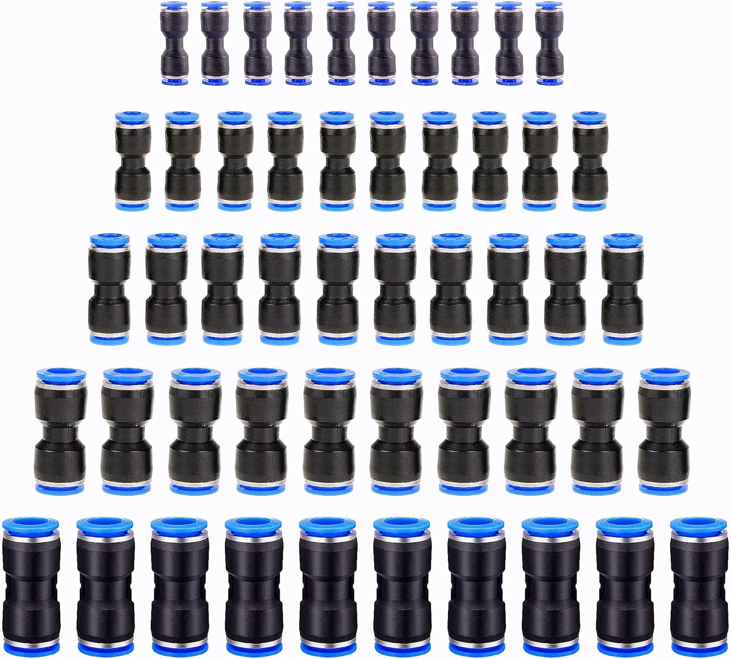 50 Stück gerade Steckverbinder, 4/6/8/10/12 mm pneumatische Schnellverschluss-Luftleitungsanschlüsse für 1/6” 1/4” 5/16” 3/8” 1/2” Rohr (2 Wege) Eigenscha