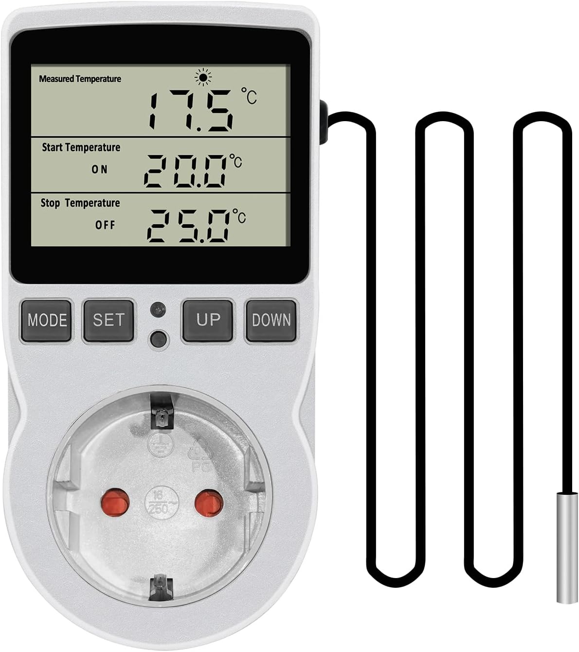 KETOTEK KT3100 Digitale Thermostat-Steckdose mit 3-m-Sensor, 230 V, 16 A Temp...