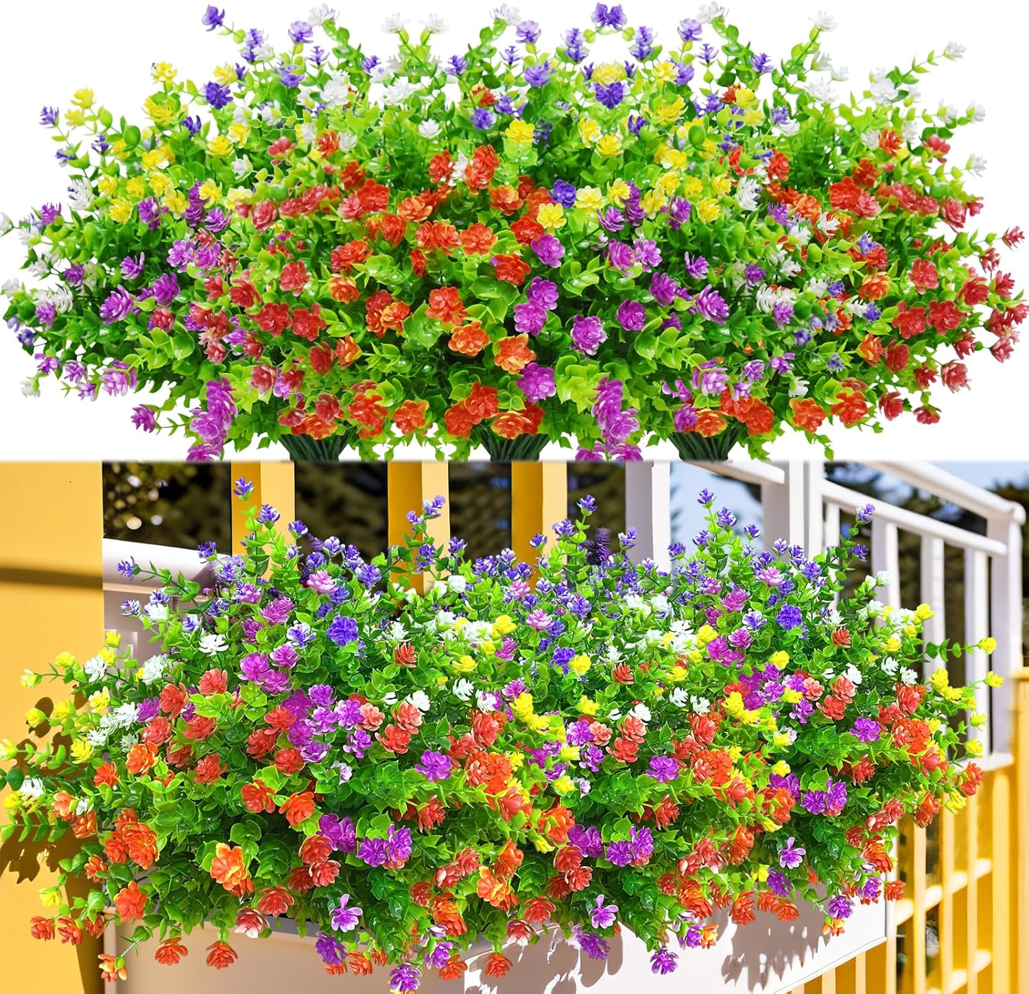 Kinisty 12 Bündel Kunstblumen Outdoor Wetterfest Künstliche Blumen wie Echt, Kunstpflanzen Frühling Sommer Balkonpflanze Plastikblumen für Außen Balkon Bal