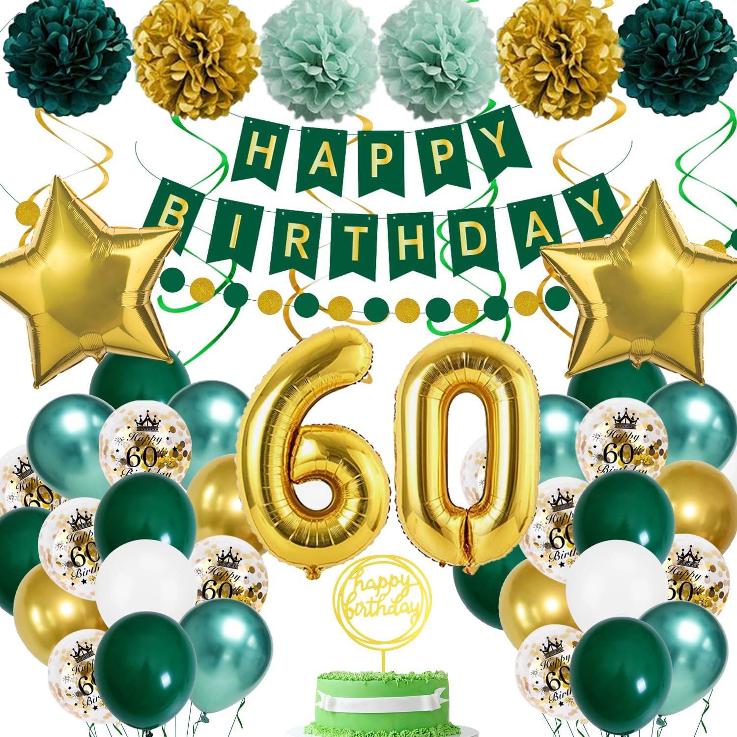 KISPATTI 60 Geburtstag Deko Frauen Mann, 60. Dekoration Grün Gold Geburtstagd...