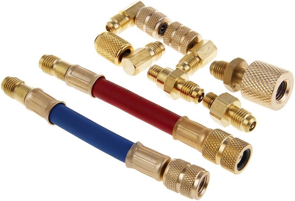 Das Set umfasst insgesamt 8 Adapter, die ideal für die Konvertierung von R134A und R12 Fahrzeug-Klimaanlagen sind. Dies macht es zu einem vielseitigen Werkzeug für verschiedene Automodelle, die möglicherweise unterschiedliche Kältemittel verwenden. Die verschiedenen Adaptergrößen, darunter 7/16M und 3/8F, sind im Set enthalten und ermöglichen eine breite Anwendung. Diese Flexibilität ist besonders vorteilhaft, wenn man mehrere Fahrzeuge mit unterschiedlichen Klimaanlagen bedient.