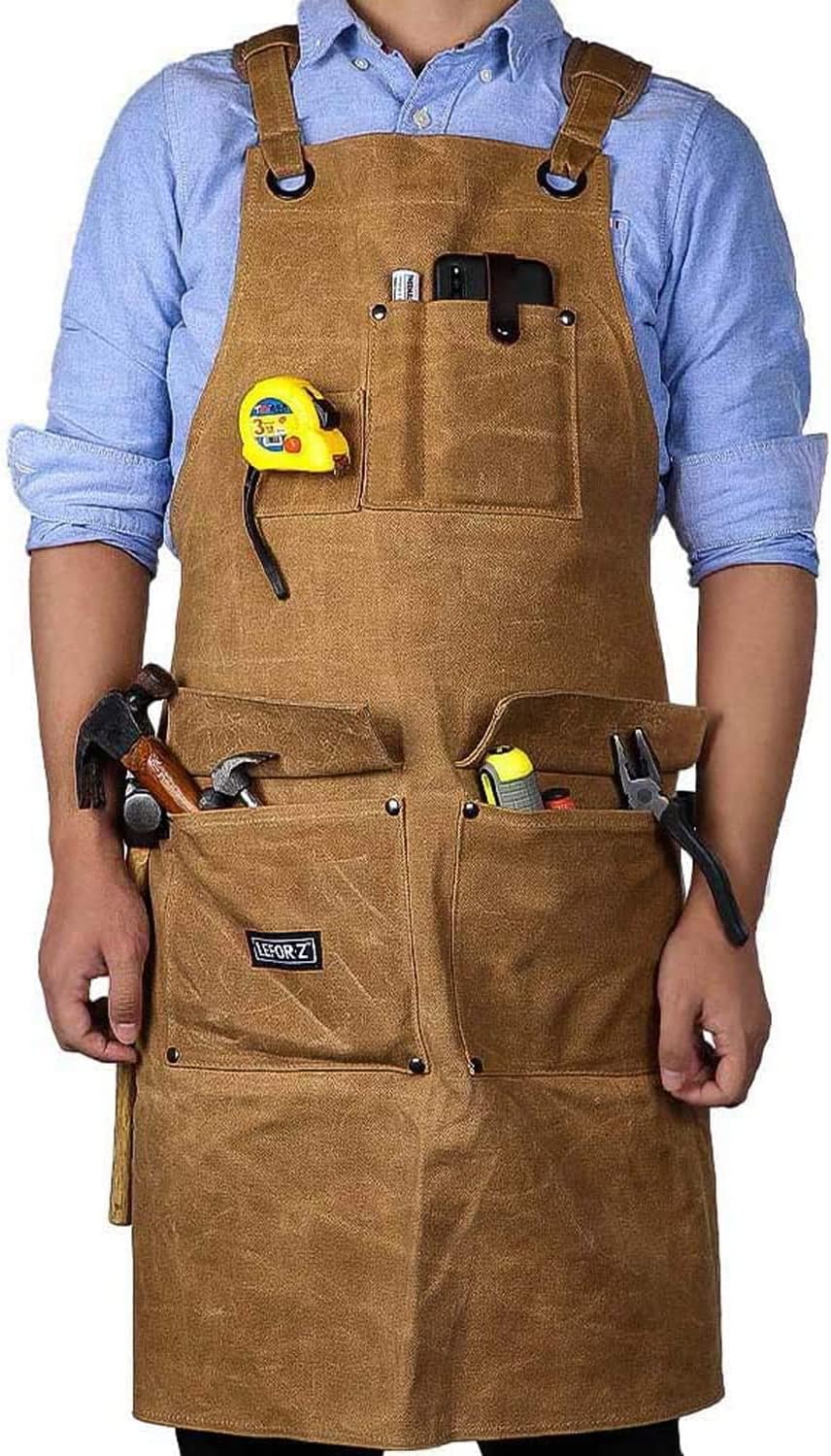LEFOR·Z Arbeitsschürze Herren,Robuste Werkzeugschürze für Männer, Schweißerschürze mit Kreuz-Rückengurten, Arbeitsschürze für Garten, Keramik, Werkstatt, G