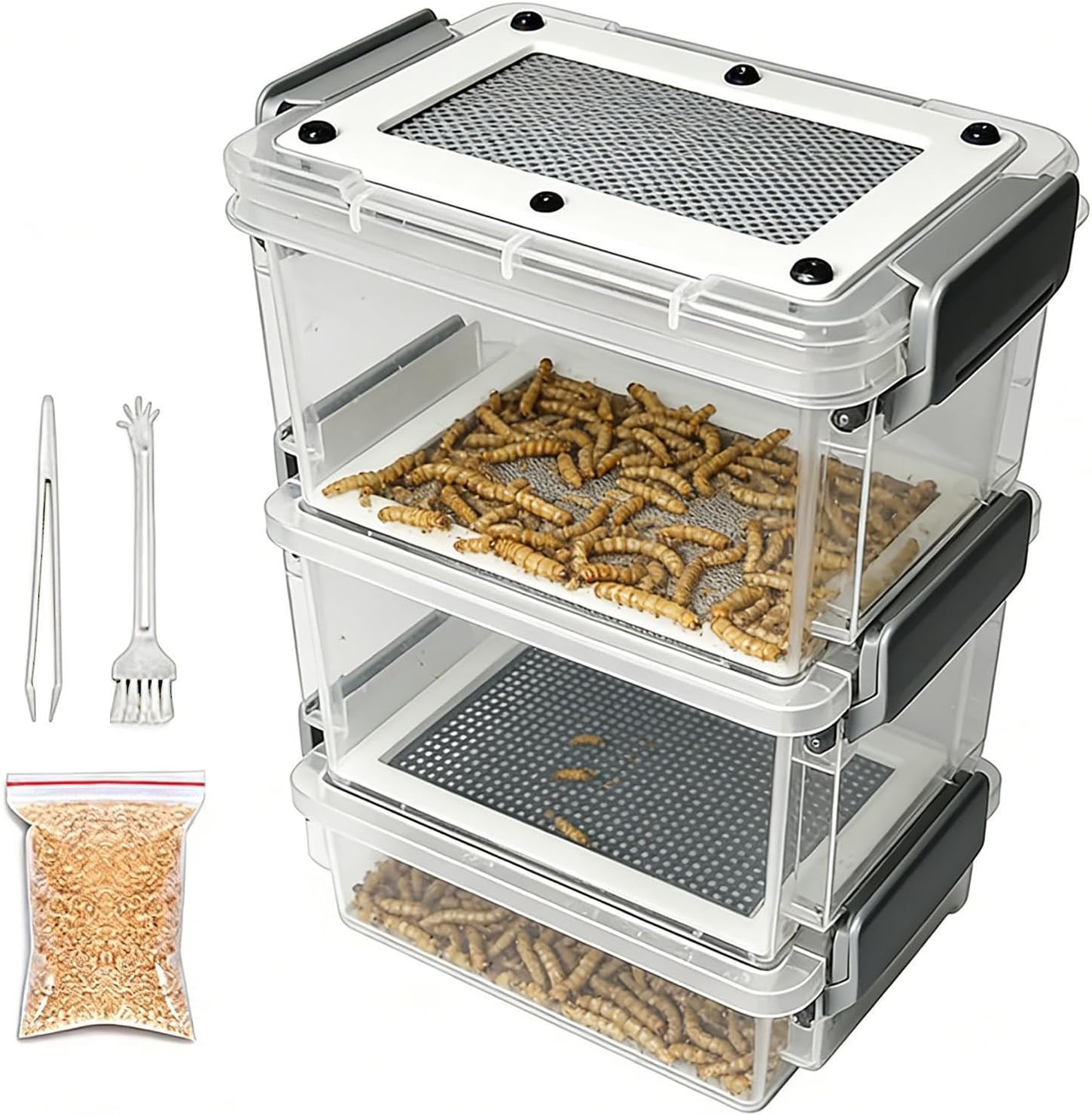 Live Mealworm Breeding Kit - 3-Layer Corn Worm Breeding System, Stackable Mea...