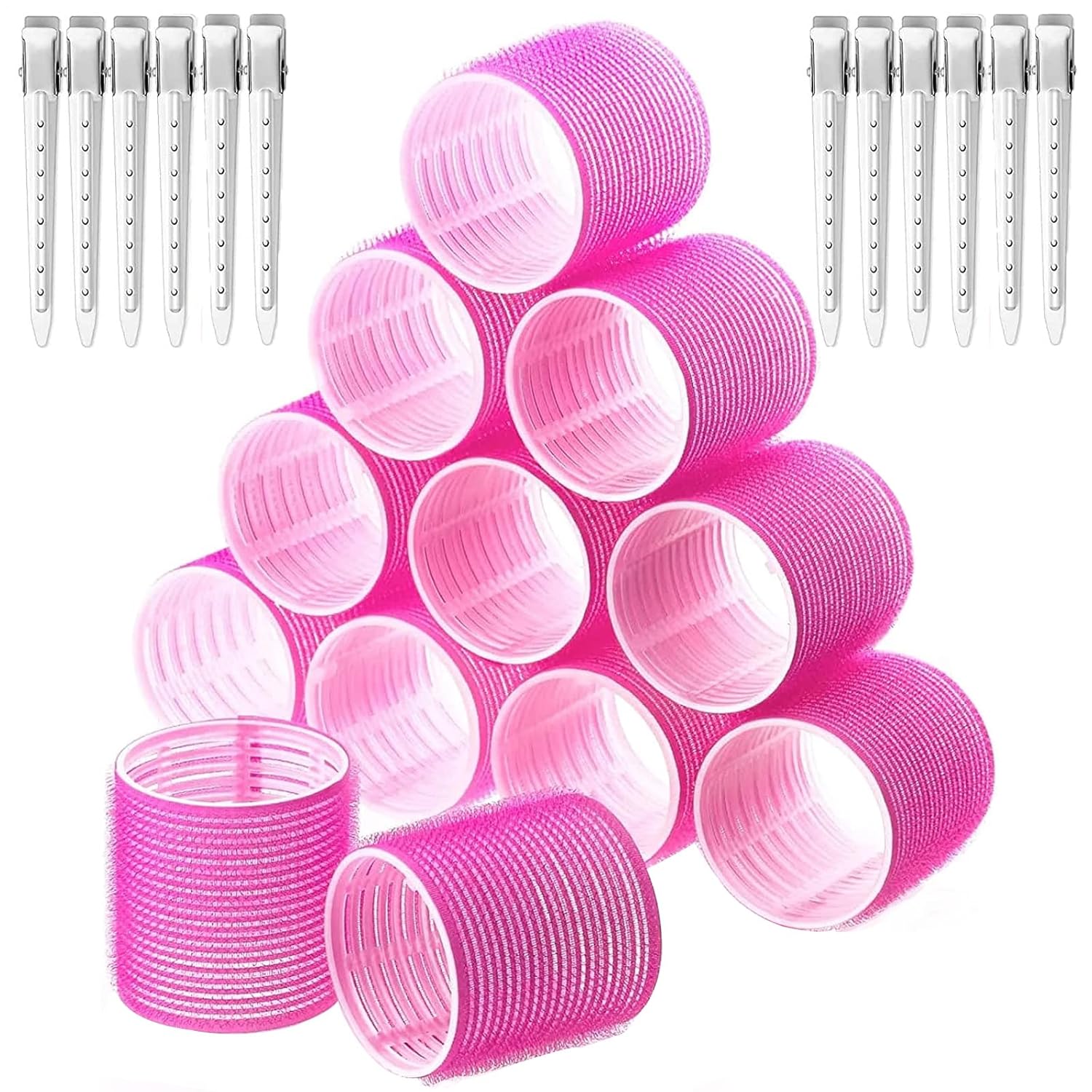Lockenwickler Set 24 Stücke, Große Locken Curlers Ohne Hitze Selbsthaftend Haftwickler, Groß Haarwickler Hair Rollers mit 12 Stücke Entenschnabelclips für