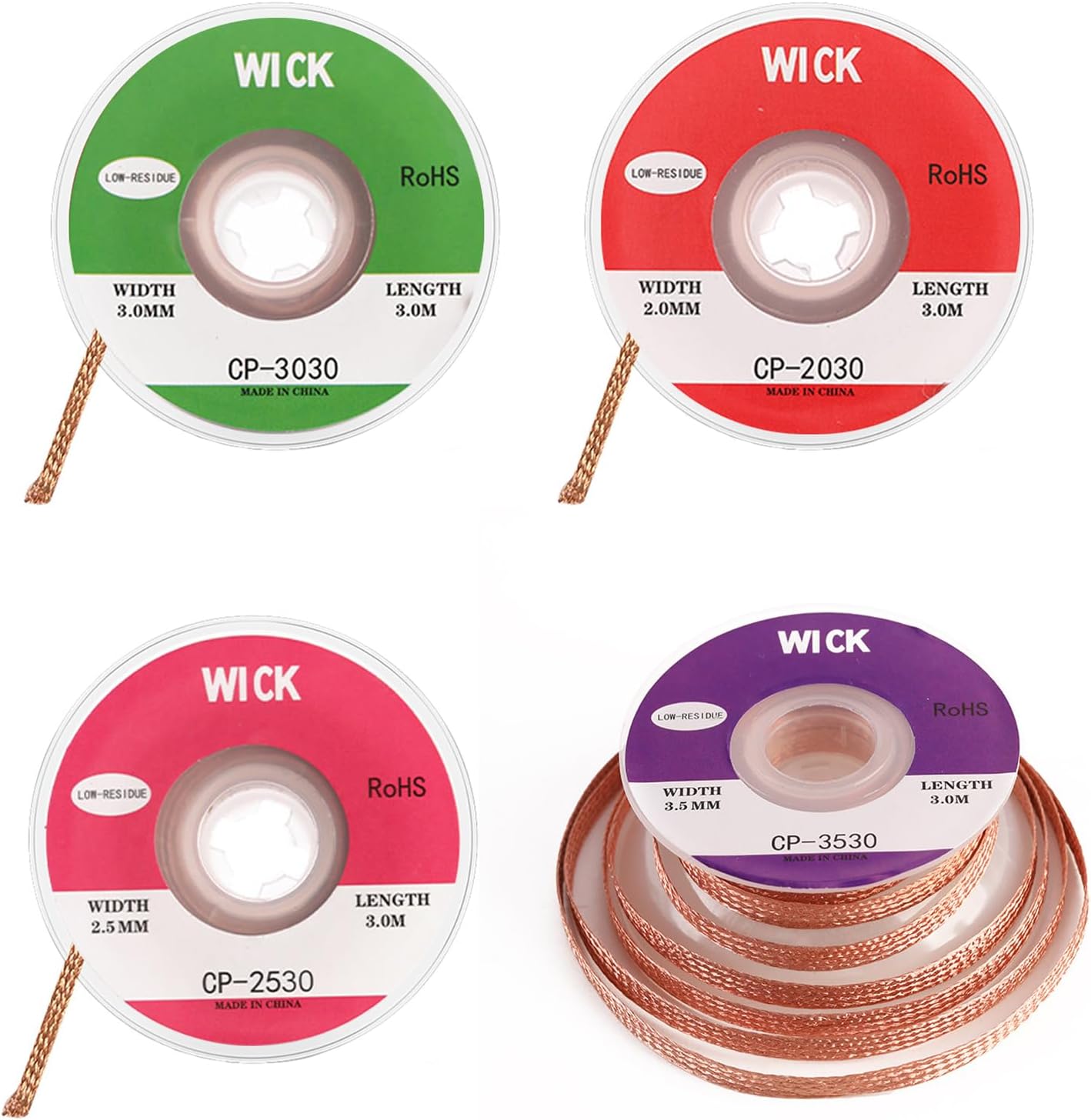 Lötlitze, 4 Stück Entlötlitze Set Kupfer Entlötdraht No-Clean Entlötlitze 2mm 2.5mm 3mm 3.5mm Entfernen des Lötzinns zum Zerlegen Elektrischer Komponenten