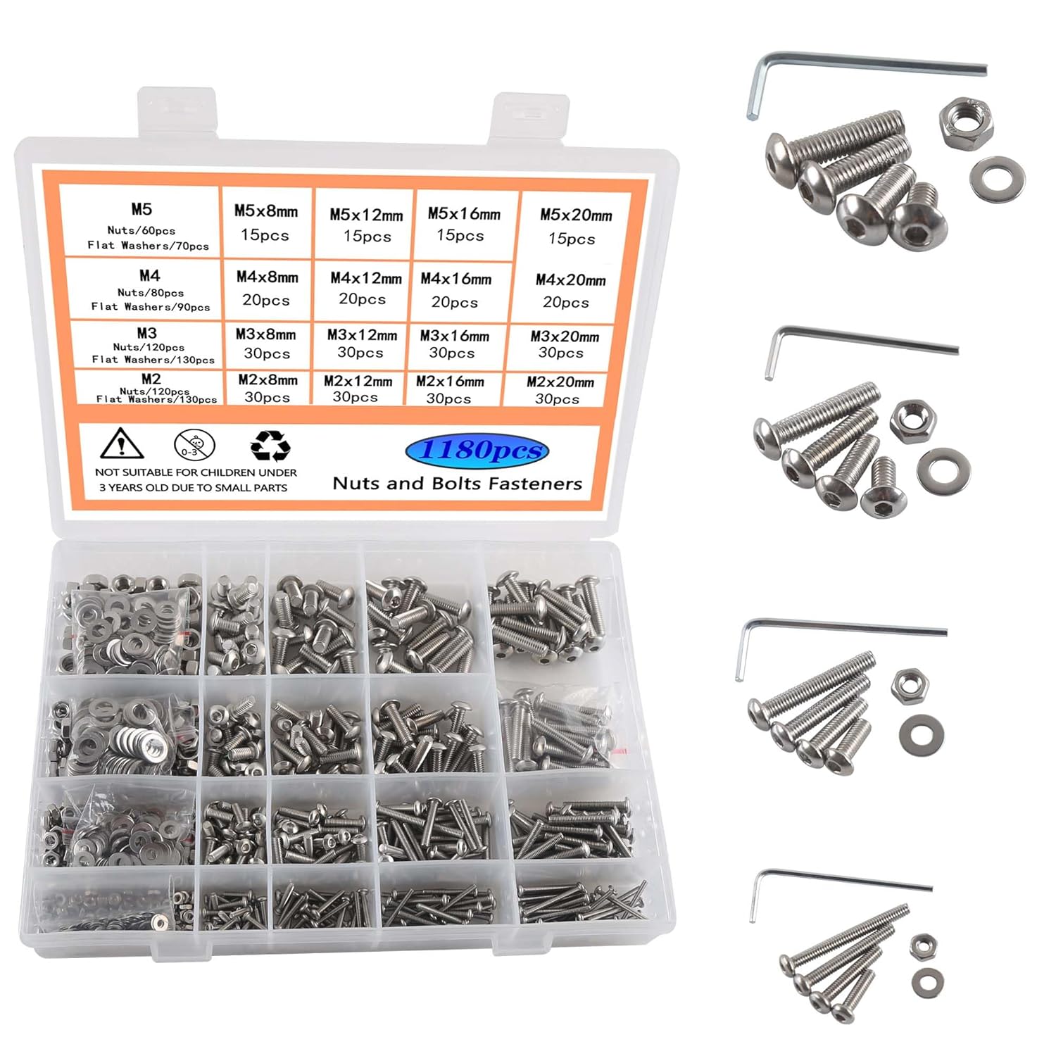 M2 M3 M4 M5 Schrauben und Muttern Unterlegscheiben Schraubenschlüssel 304 Edelstahl Linsenkopfschrauben Rund-Knopfkopf Schraubenset mit Sortiment Box Und S