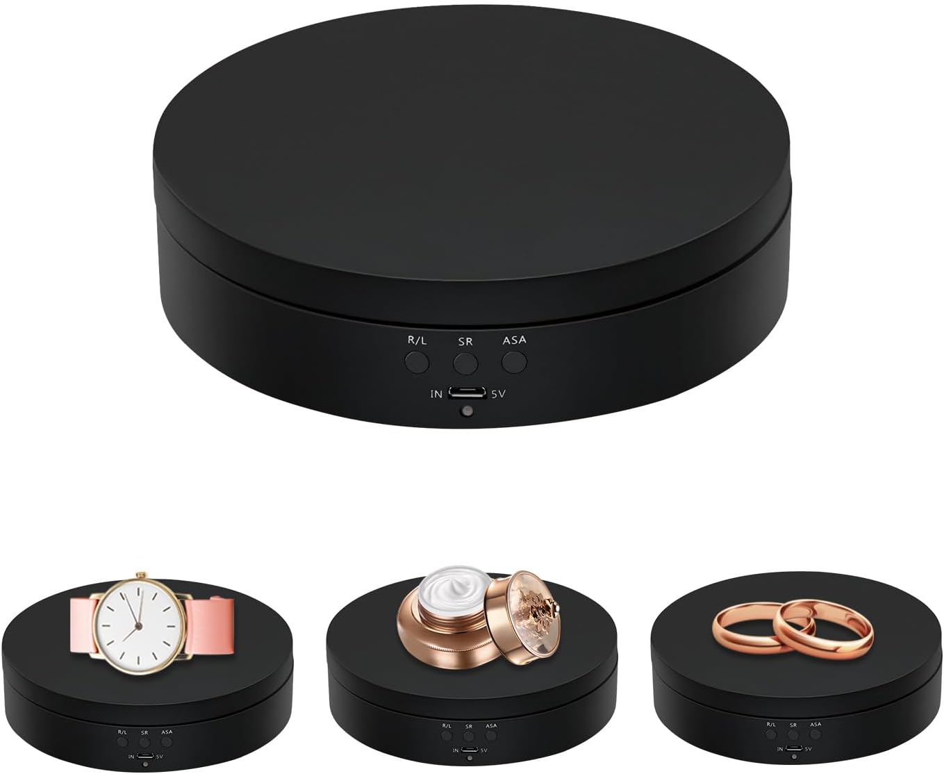 Der Drehteller hat einen Durchmesser von 13,8 cm und eine Tragfähigkeit von bis zu 3 kg. Das verwendete ABS-Material macht den Drehteller robust und langlebig. Der Motor sorgt für eine gleichmäßige und reibungslose Rotation, was für eine professionelle Präsentation unerlässlich ist. Die kompakte Bauweise und das schlichte Design in Schwarz ermöglichen es, dass der Drehteller in verschiedenen Umgebungen, sei es in Geschäften, Studios oder bei Ausstellungen, gut zur Geltung kommt.