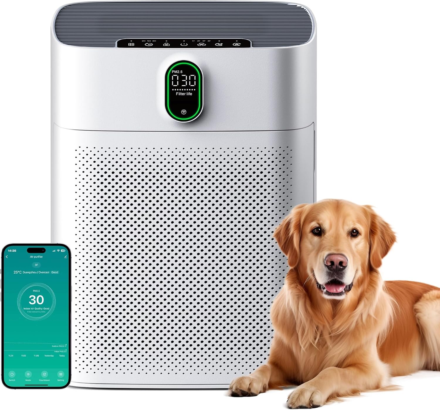 Luftreiniger für große Räume bis zu 102 m² ideal für Schlafzimmer in nur 1 Stunde, H13 True HEPA Luftreiniger reduziert effektiv 99,97% Rauch, Feinstaub un