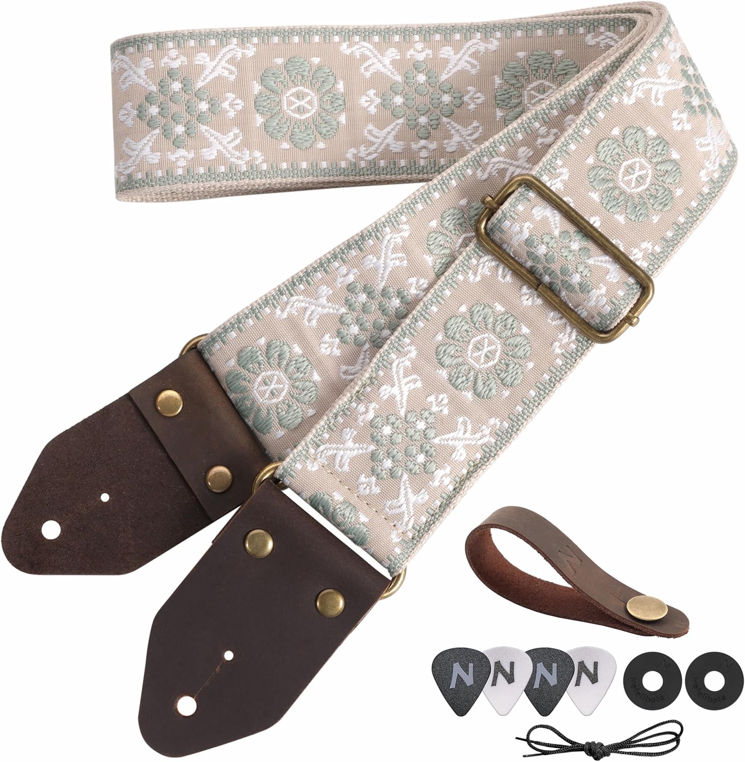 Nefelibata Gitarrengurt, Jacquard-Stickerei Baumwolle Gitarrengurte mit Crazy Horse Leder Enden für Bass, elektrische & akustische, Geschenke für Kinder, G