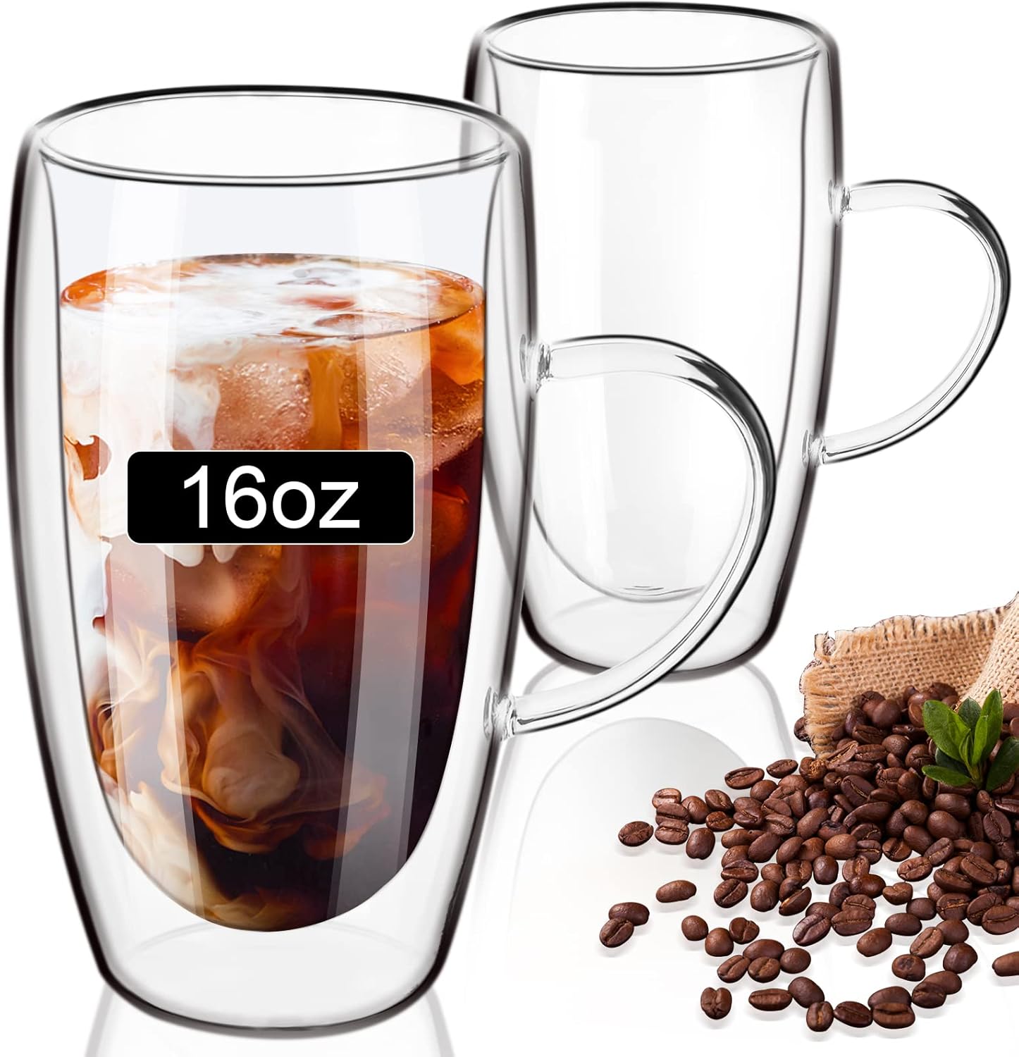 ParaCity Cappuccino Tassen 2er Set, 470ml Latte Macchiato Gläser, Doppelwandige Gläser mit Henkel, Espressotassen aus Borosilikatglas, Kaffeegläser für Spü