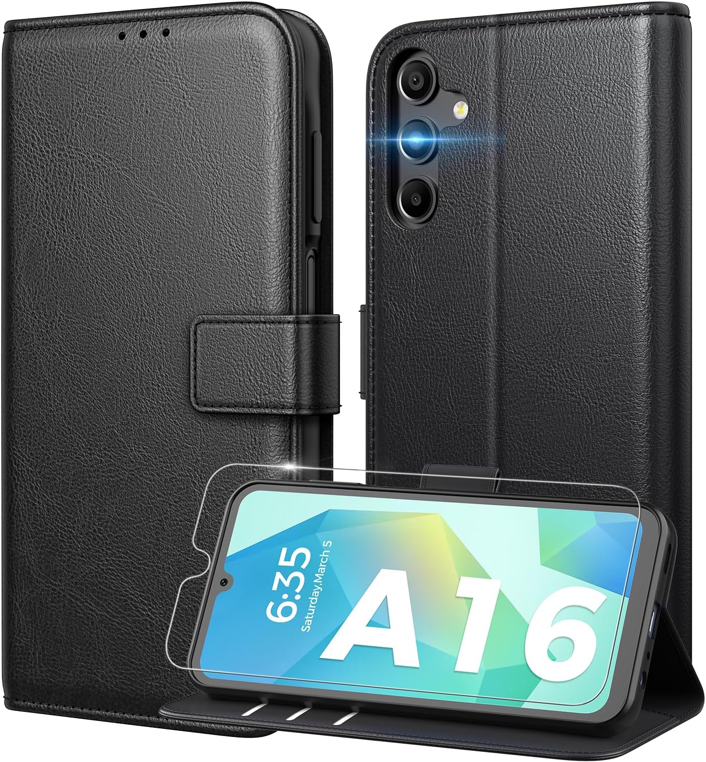 Peakally Handyhülle für Samsung Galaxy A16 5G Hülle [Mit 1 Stück Panzer Schutz Glas] [Premium PU Leder] [RFID-Blockierung] [Kartenfach] Klapphülle kompatib