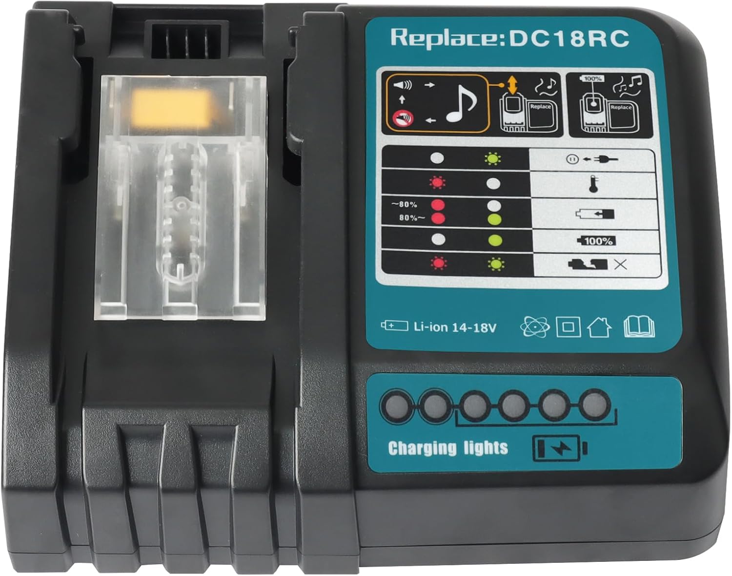 Eines der herausragenden Merkmale des QUPERR DC18RC Ladegeräts ist seine breite Kompatibilität. Es unterstützt eine Vielzahl von Makita Akkus, darunter die beliebten Modelle BL1815N, BL1820, BL1830, BL1840B, BL1850 und BL1860. Damit ist es nicht nur eine kostengünstige Alternative zu Original-Ladegeräten wie DC18RD oder DC18RA, sondern bietet auch die Flexibilität, verschiedene Akkus effizient zu laden. Diese Vielseitigkeit macht das Ladegerät zu einer attraktiven Wahl für Handwerker und DIY-Enthusiasten, die mehrere Werkzeuge mit unterschiedlichen Akkus besitzen.Intelligente LED-Ladeanzeige