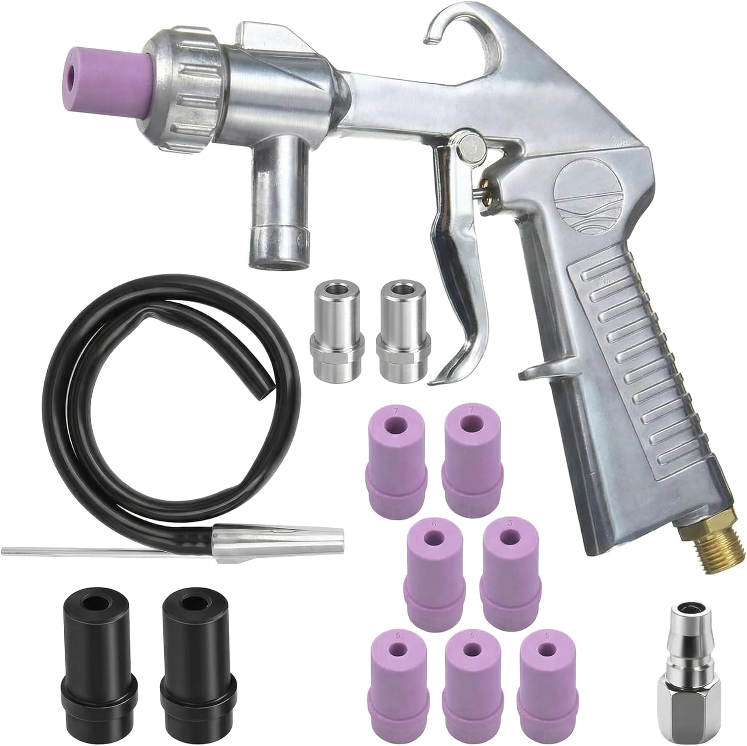 Sandstrahlpistole Set Druckluft, Sandstrahlen Pistole Kit mit 1m Gummischlauch, verschiedenen Düsen und Luftanschlussnippel, zum Sandstrahlen für Auto, Ros