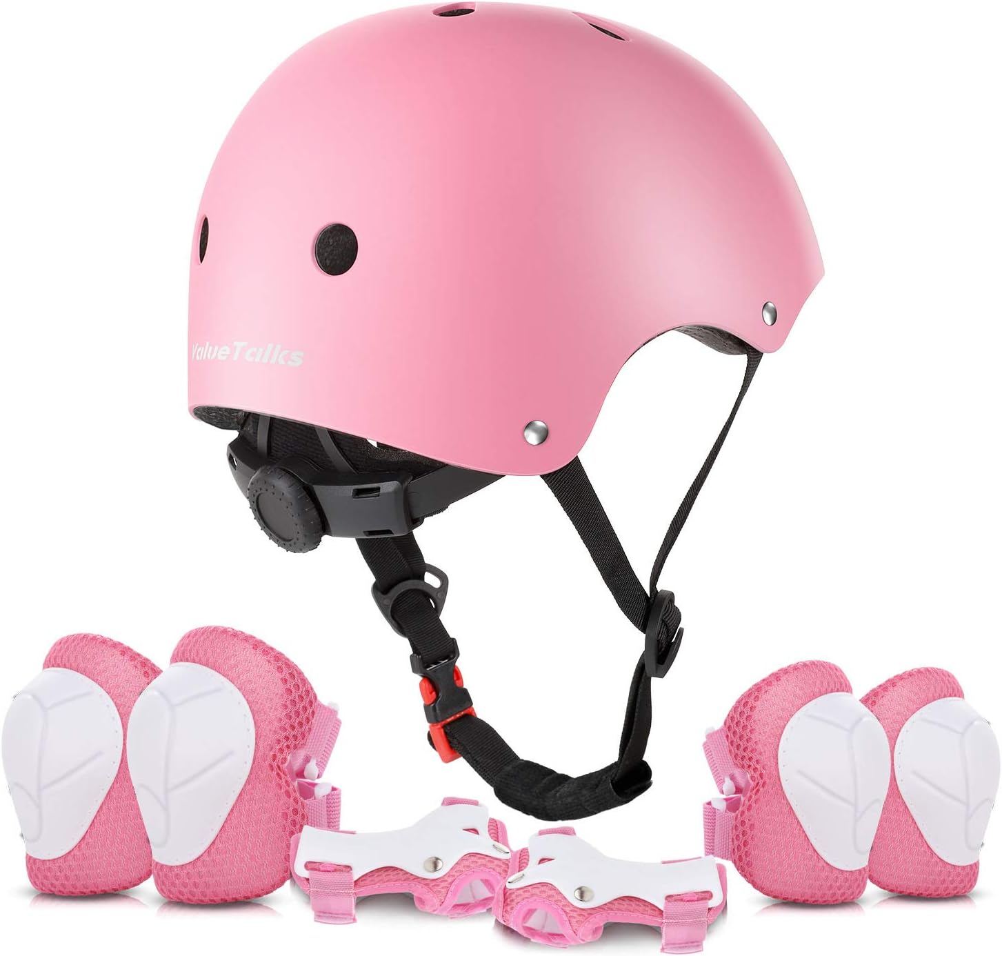 Das ValueTalks Schonerset umfasst alles, was ein Kind für einen sicheren Sporteinsatz benötigt: einen Helm, zwei Ellenbogenschützer, zwei Handgelenkschützer und zwei Knieschoner. Diese umfassende Ausstattung ist besonders vorteilhaft, da Eltern nicht mehrere Produkte separat kaufen müssen. Der Helm hat einen verstellbaren Kopfumfang von 50 bis 54 cm, was ihn für Kinder im Alter von 3 bis 9 Jahren geeignet macht. Die verschiedenen Teile sind aus weichem EVA gepolstert und verfügen über harte Kunststoff-Platten für zusätzlichen Schutz.