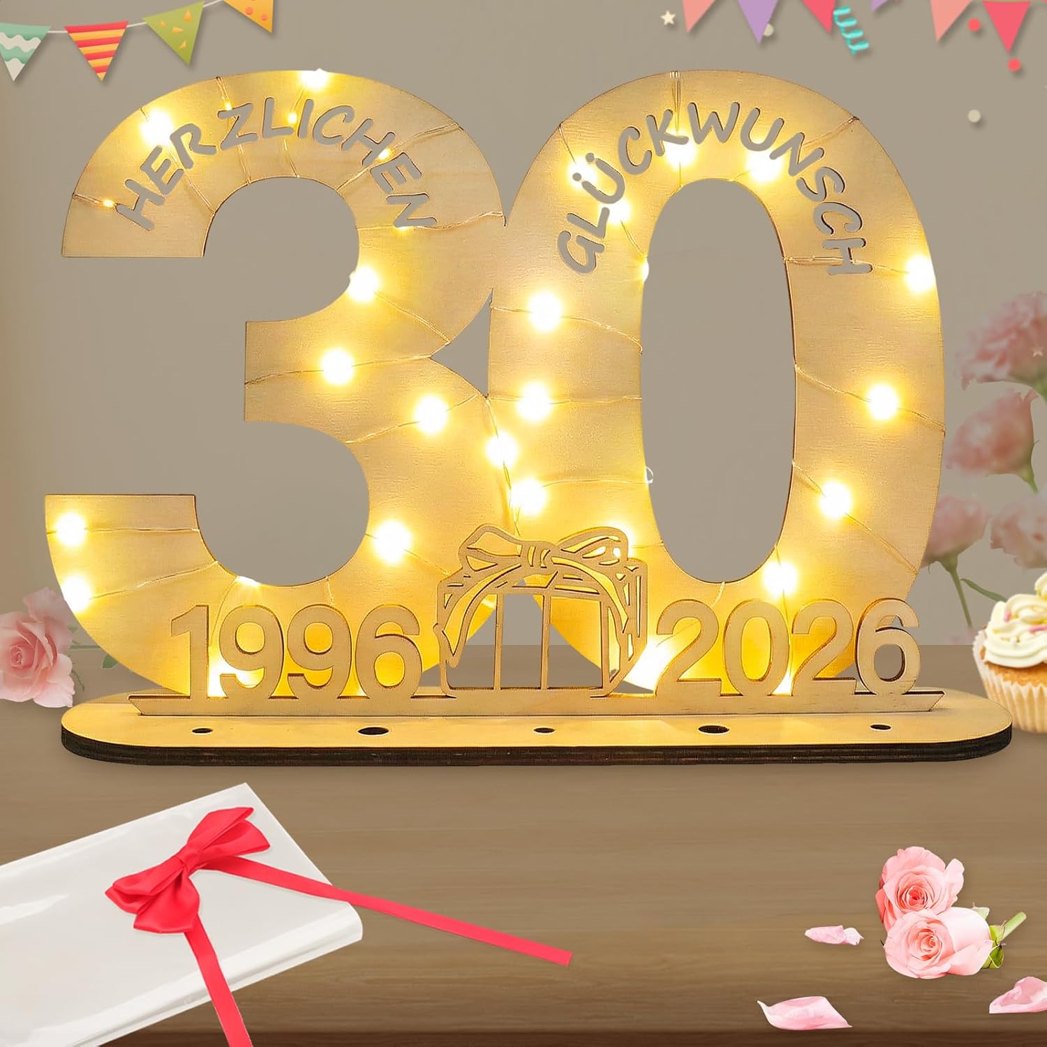 Seutgjie Originelle Geschenk 30 Geburtstag Frauen Männer 1996-2026, 30 Geburtstag Deko Tischdeko Perlenhochzeit, Geldgeschenke Geburtstag 30 mit LED Lichte