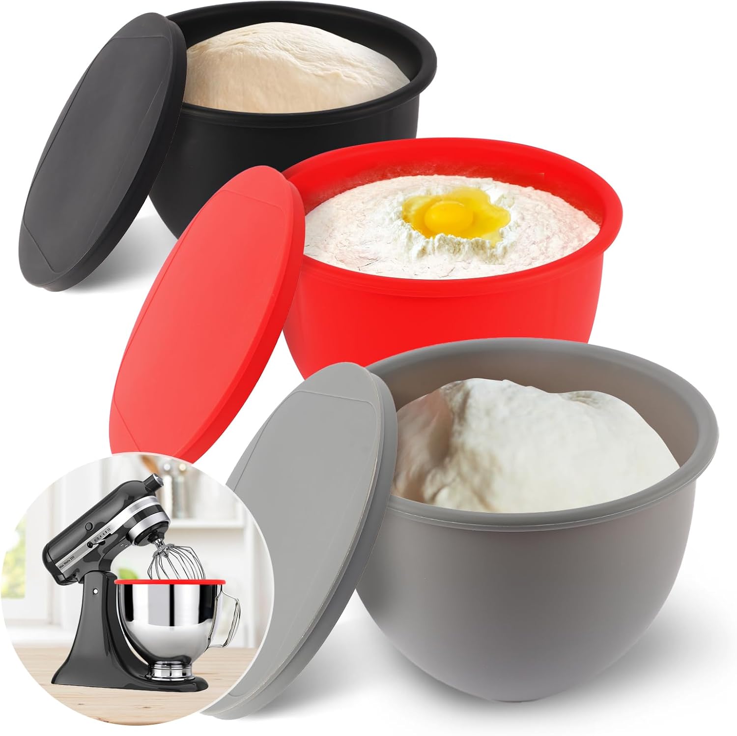 Silikon-Rührschüssel-Einsätze, kompatibel mit 4,8-Liter-Küchenmaschinen von KitchenAid, inklusive 3 Einsätzen und Deckeln (Silicone Mixing Bowl Liners)