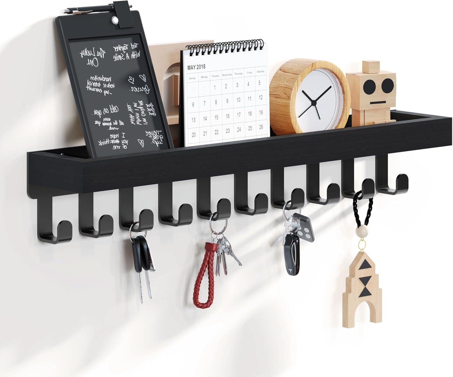 SWTYMIKI Schlüsselbrett mit Holztablett und 10 Haken - Multifunktionales Schlüsselhalter/Schlüsselboard, Schlüsselbrett mit Ablage für Flur, Schlafzimmer &
